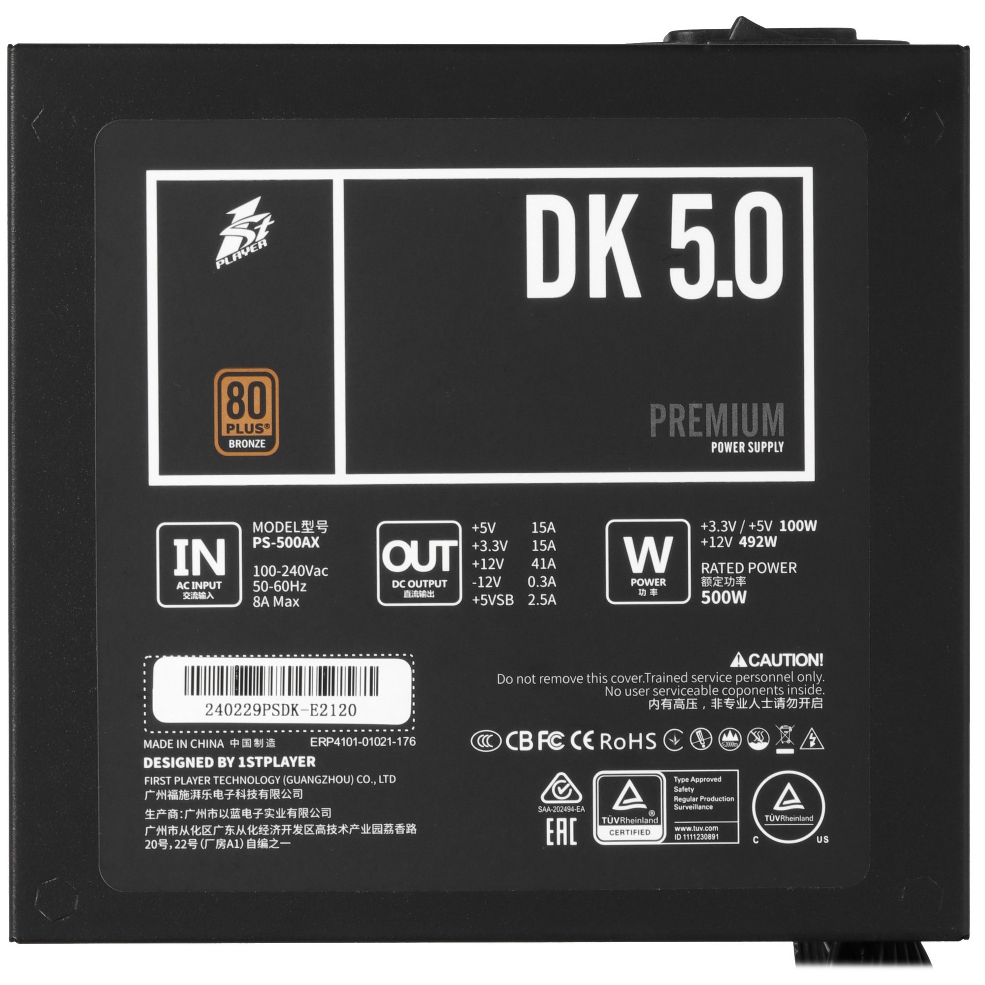 Блок питания 1STPLAYER DK PREMIUM PS-500AX, 500Вт, 80 PLUS Bronze, 120мм, черный