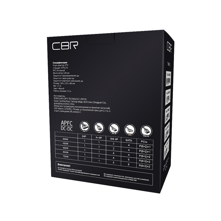Блок питания CBR PSU-ATX500-12EC, 500Вт, 120мм, черный