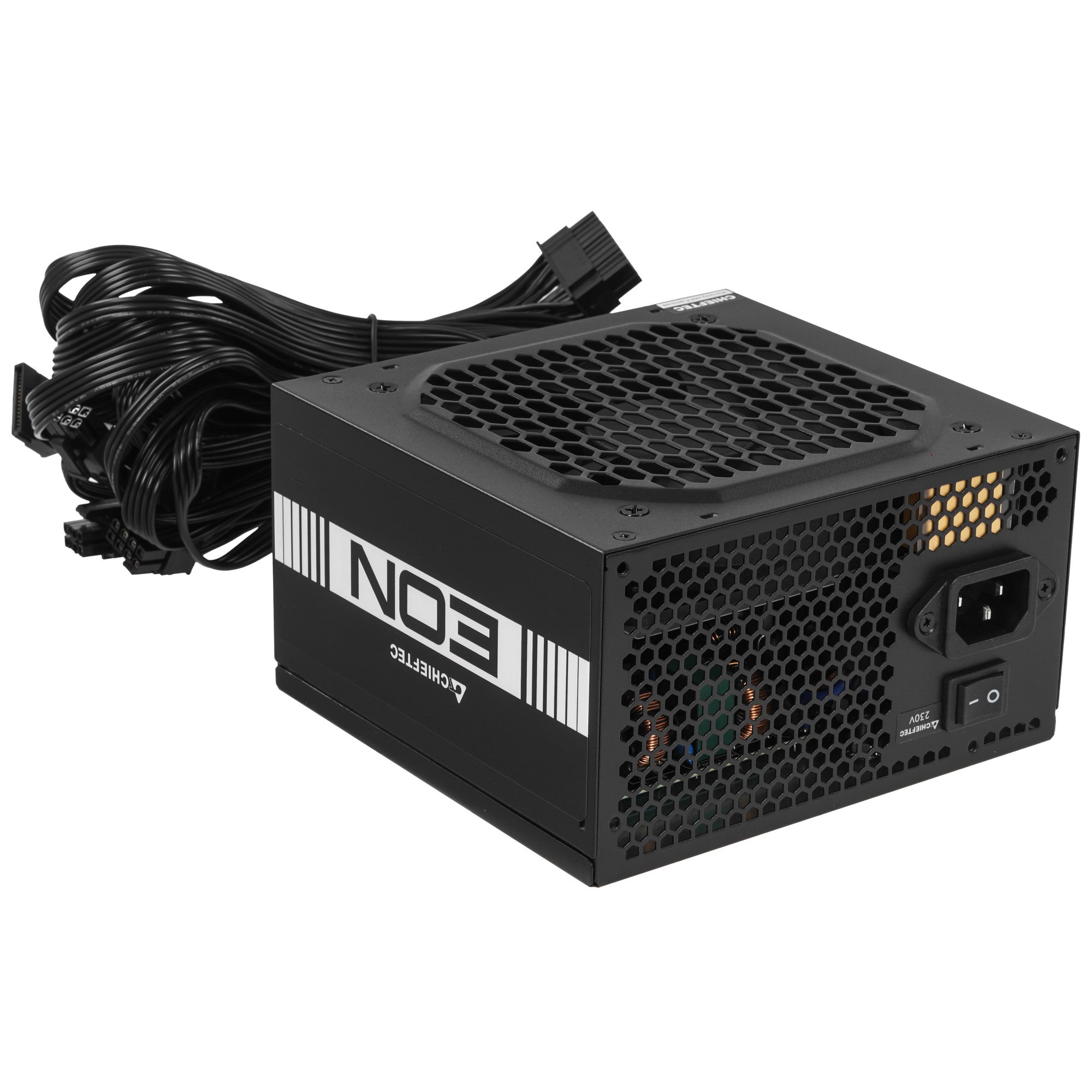 Блок питания Chieftec EON 700W представлен в форм-факторе ATX и обладает размерами 140x150x86 мм, благодаря которым ему можно найти место в различных компьютерных корпусах. Модель имеет сертификат 80 PLUS Standart, который подтверждает ее высокий КПД и низкое энергопотребление. Для охлаждения блока питания Chieftec EON 700W используется вентилятор с размерами 120x120 мм и автоматической регулировкой оборотов. Само устройство получает электроэнергию для своей работы через кабель длиной 650 мм с разъемом 20 + 4 pin.