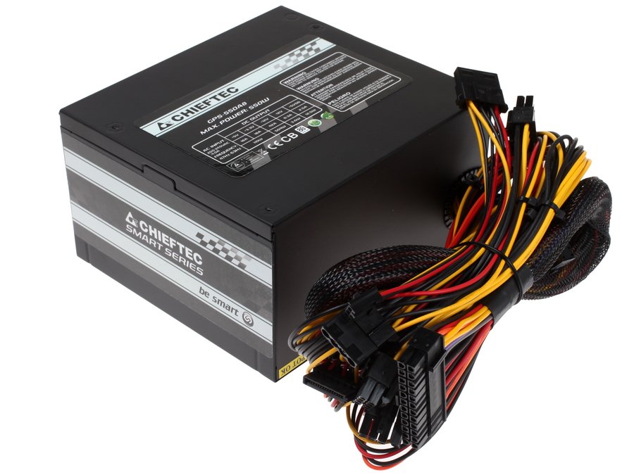 Блок питания Chieftec 550W [GPS-550A8] черного цвета с форм-фактором ATX версии 2.3 оснащен активным PFC и дополнен поддержкой EPS12V. Устройство с мощностью 550 Вт и дополнено основным разъемом 20+4 pin, CPU-разъемом 4+4 pin и двумя разъемами PCI-E 6+2 pin. Предусматривается наличие четырех интерфейсов 15-pin SATA, двух портов Molex 4-pin и одного разъема Floppy 4-pin.