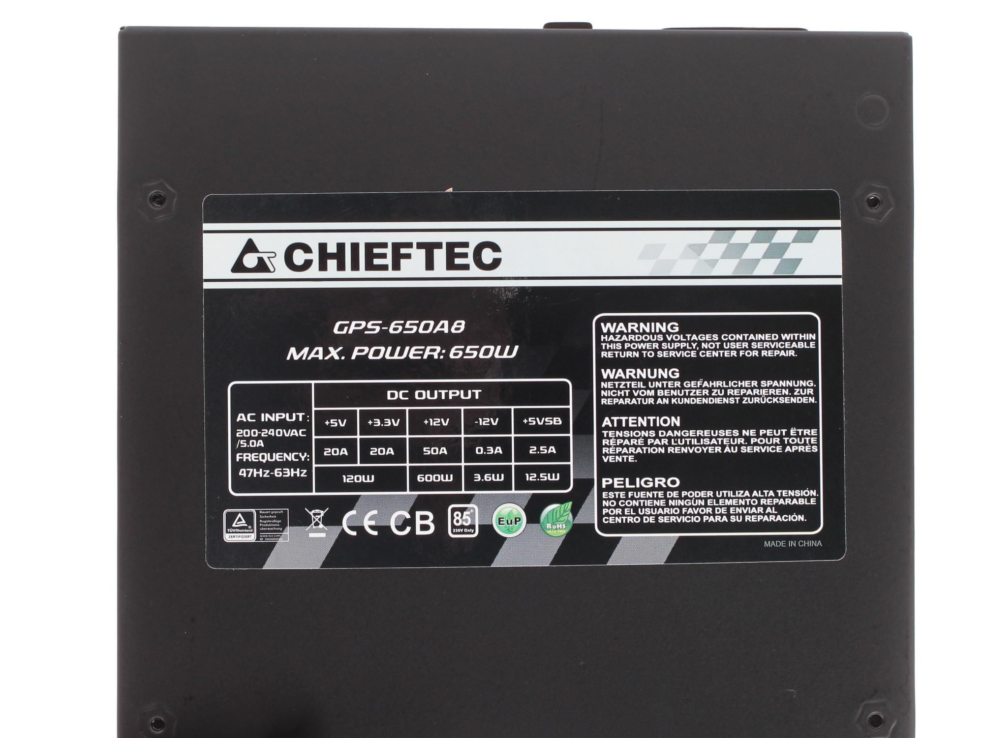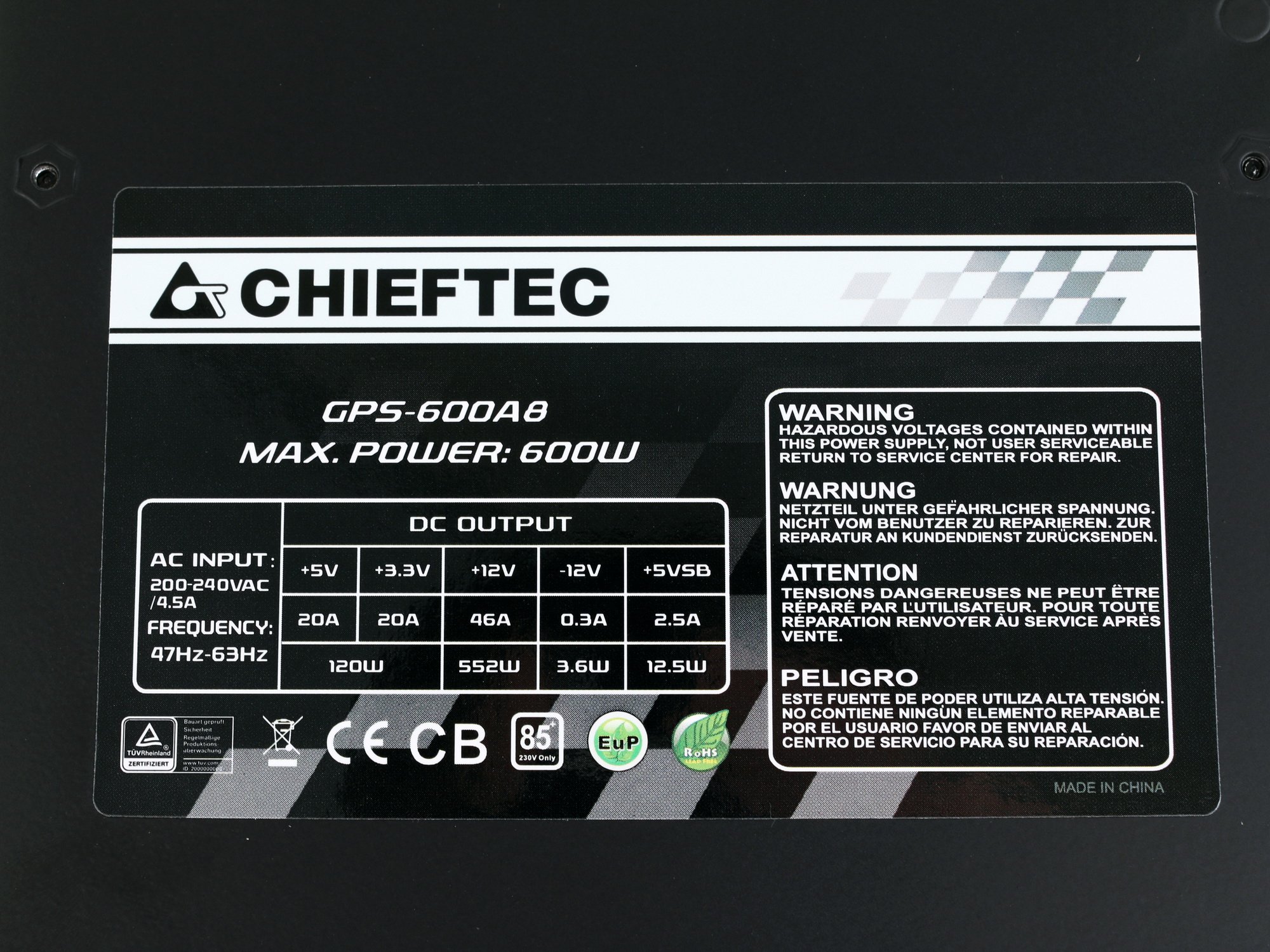 Блок питания Chieftec RTL GPS-600A8, 600Вт, 80 PLUS, 120мм, черный
