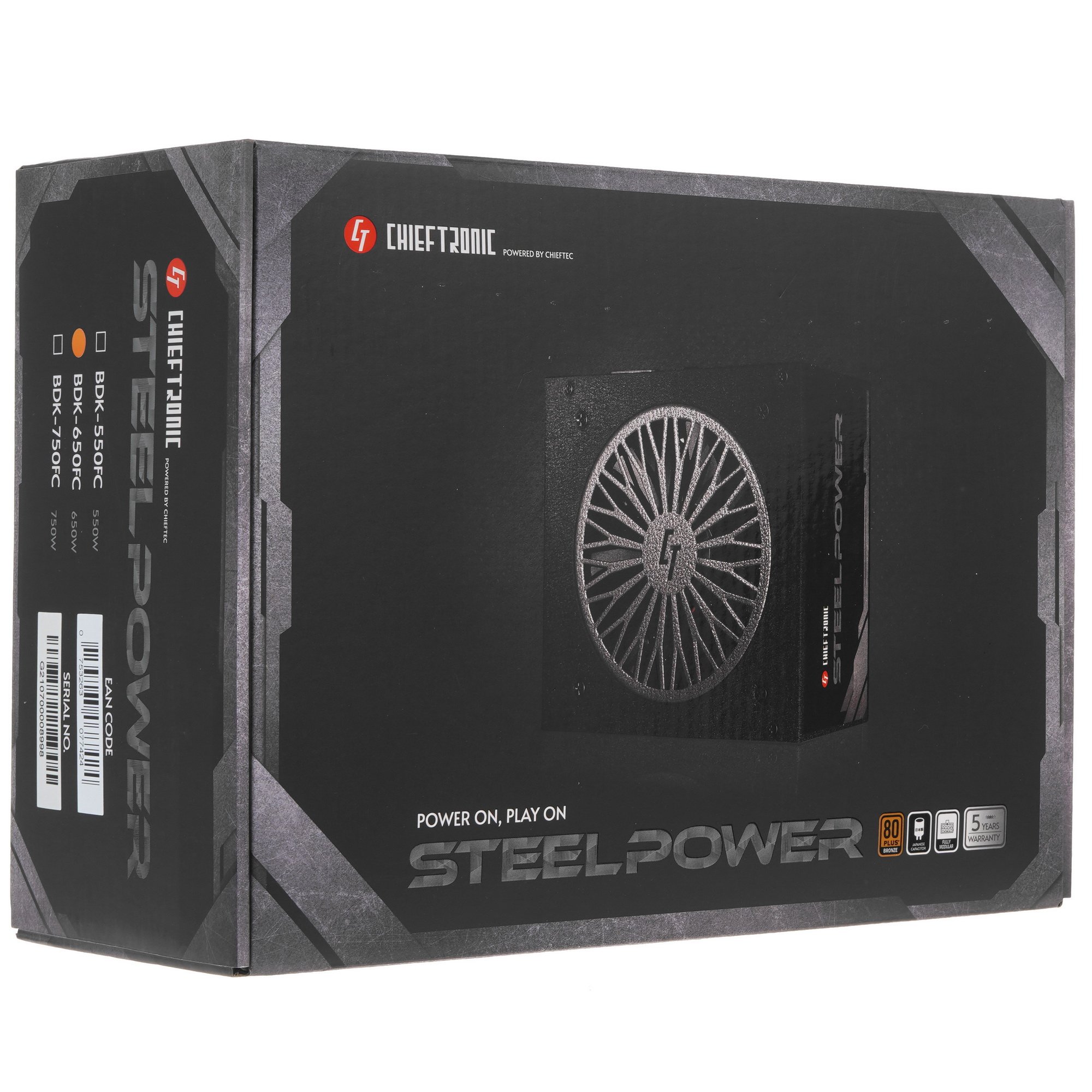 За счет эффектного дизайна блок питания Chieftec SteelPower BDK-650FC будет привлекательно смотреться в прозрачном компьютерном корпусе. Активный вентилятор кулера с авторегулировкой оборотов диаметром 12 см работает тихо.