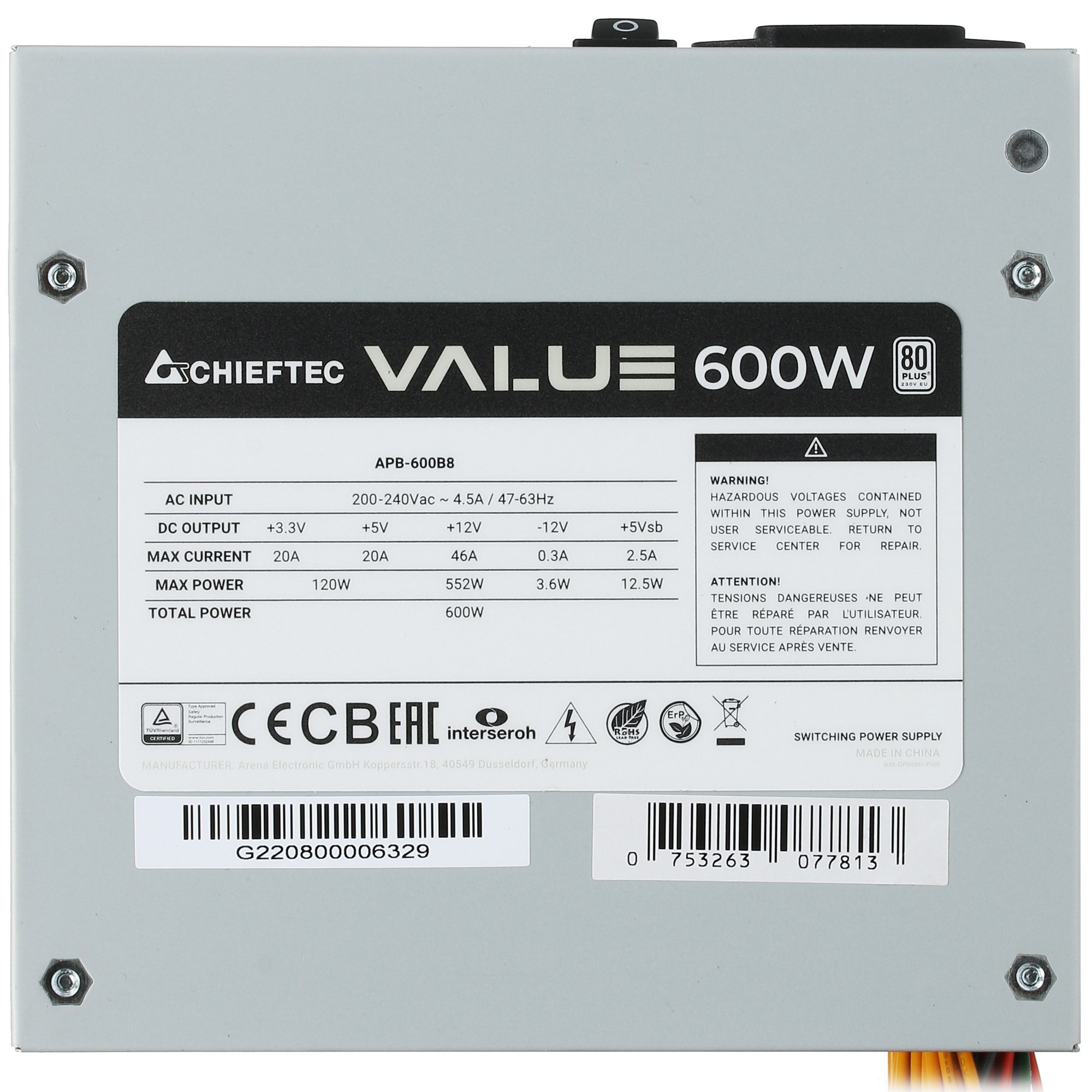 Блок питания Chieftec VALUE 600W [APB-600B8] характеризуется долгим сроком службы и высокой энергоэффективностью. Модель рассчитана на 600 Вт и подходит для сборки домашнего или офисного компьютера. Корпус изготовлен из прочного металла, устойчивого к деформации и внешним воздействиям. Форм-фактор ATX соответствует размеру большинства системных блоков.