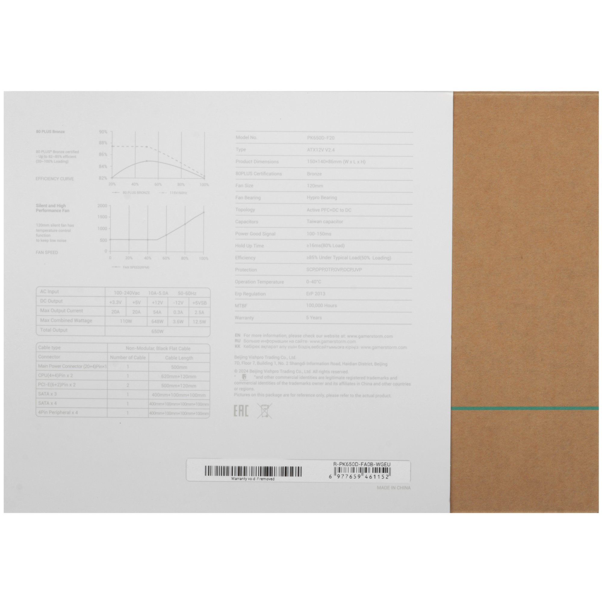 Блок питания Deepcool / GamerStorm PK650D, 650Вт, 80 PLUS Bronze, 120мм, черный