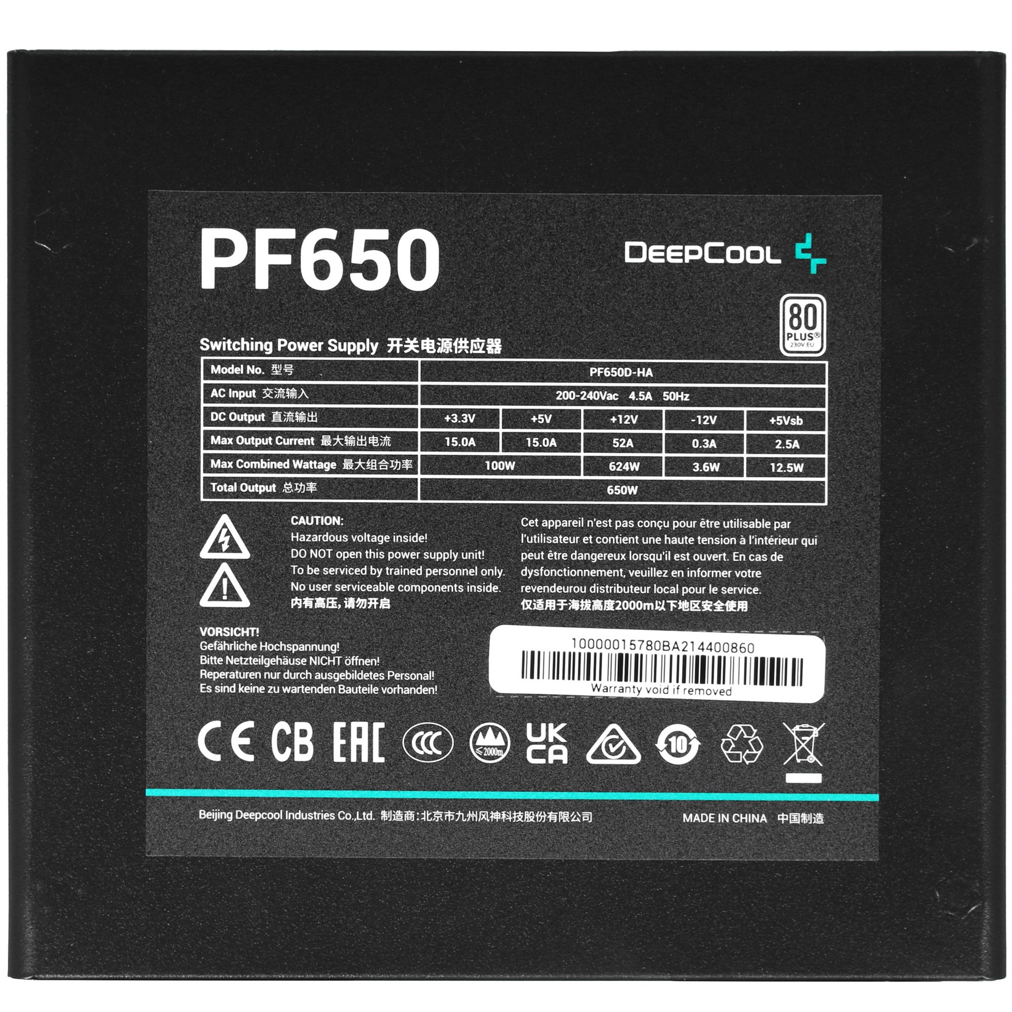 Блок питания Deepcool / GamerStorm PF650, 650Вт, 80 PLUS, 120мм, черный