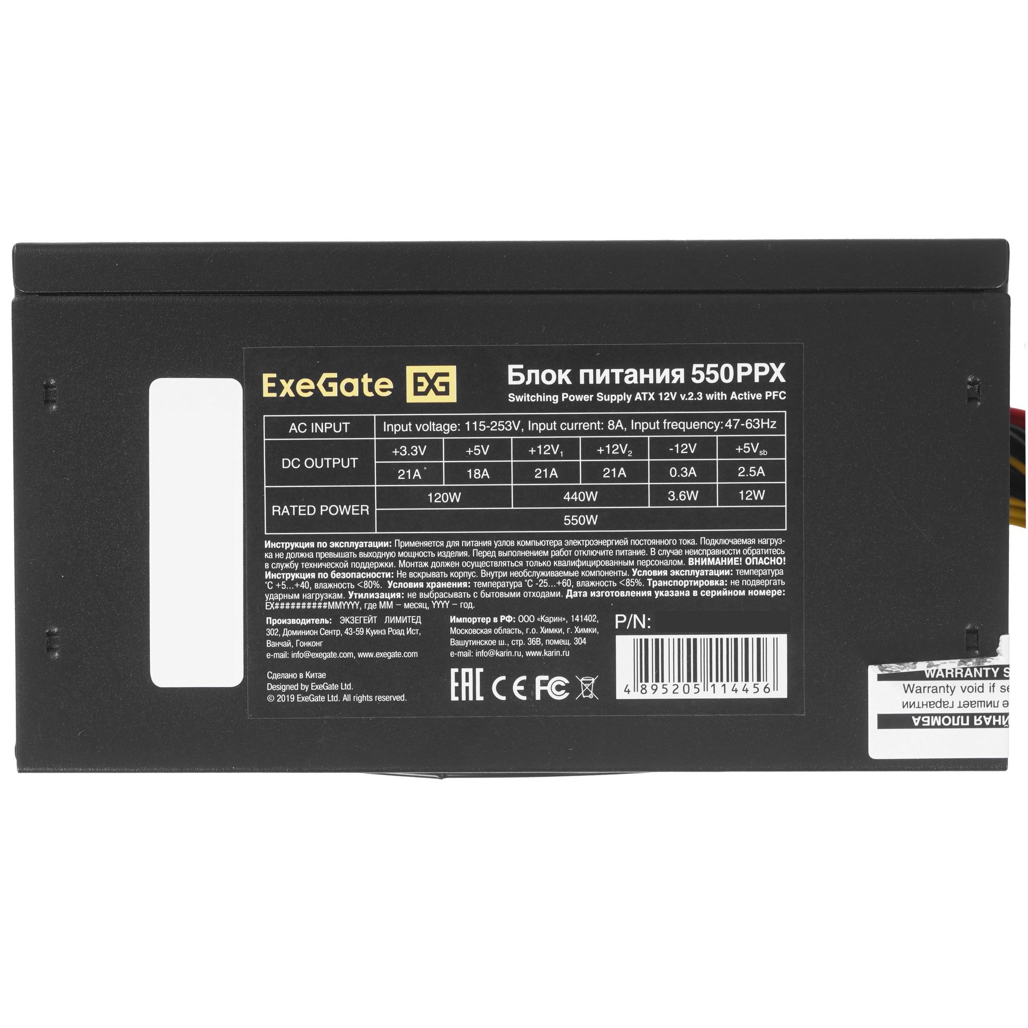 Блок питания ExeGate 550PPX RTL (EX282073RUS), 550Вт, 140мм, черный