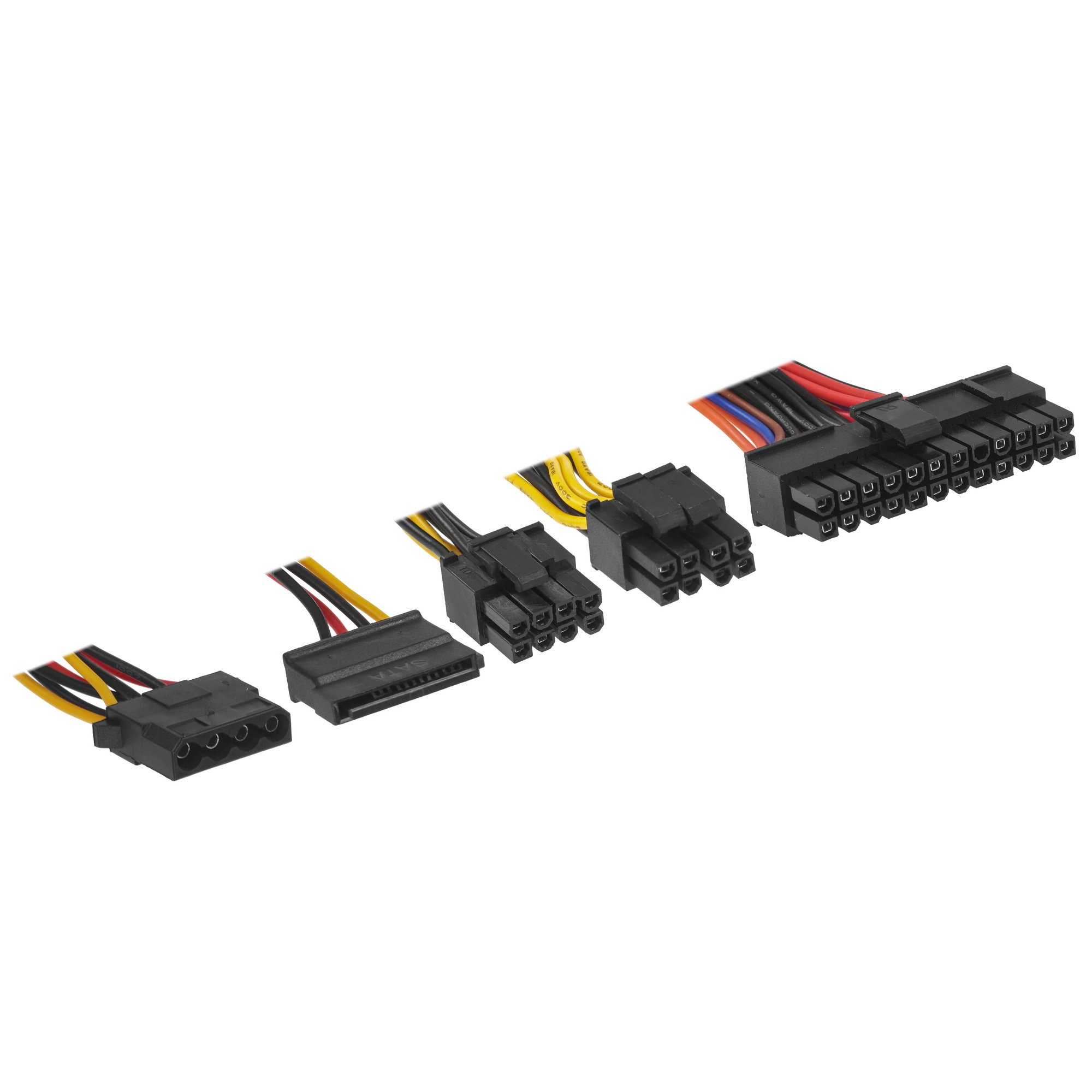 Модель ExeGate 550PPX оснащена всеми необходимыми разъемами для питания компьютерных компонентов. Для процессора предусмотрен один разъем 4+4 pin. Для видеокарт доступны два разъема 6+2 pin. Также присутствуют 4 разъема SATA для различного оборудования, 3 разъема типа Molex и отдельный разъем для Floppy-дисковода.