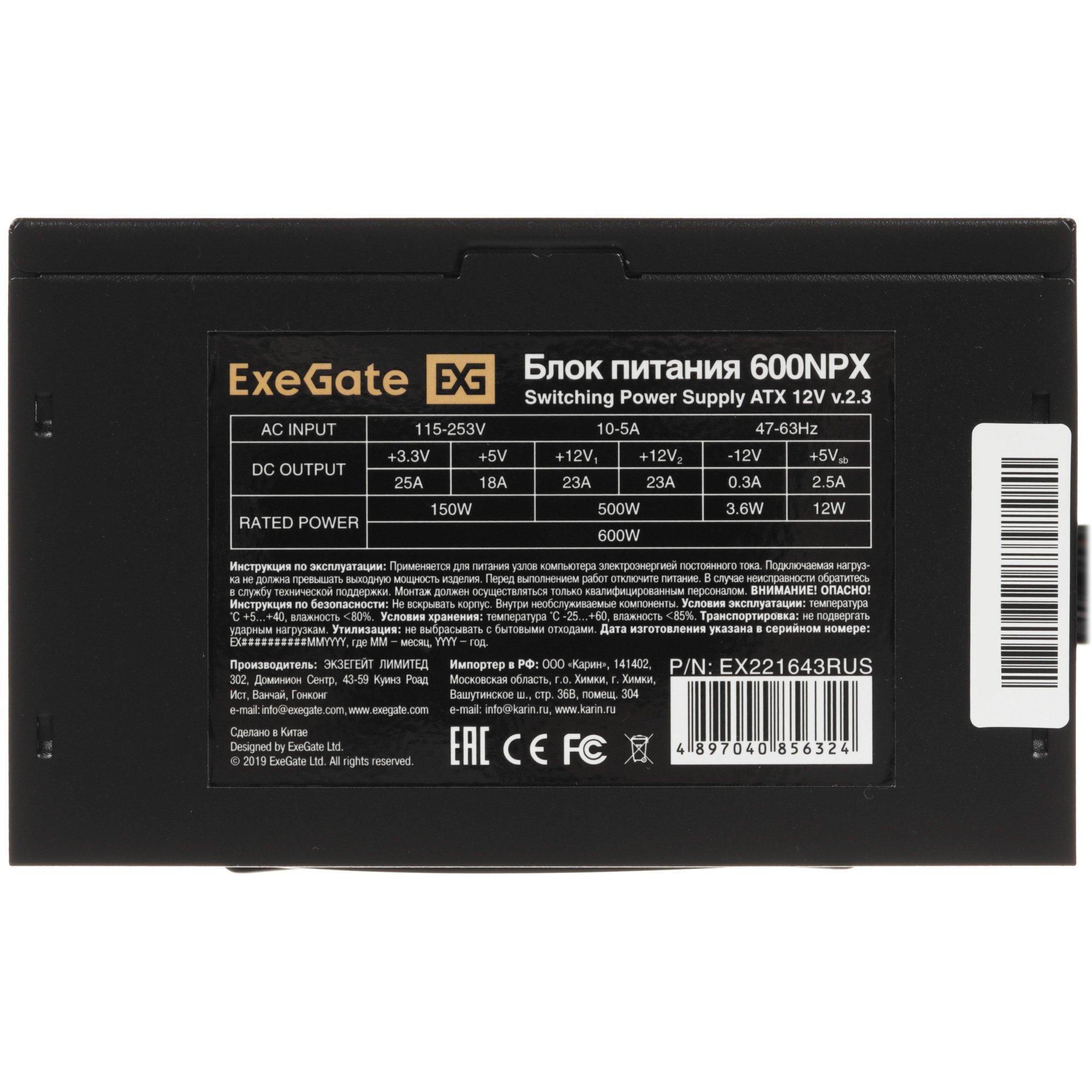 Блок питания ExeGate 600NPX (EX221643RUS), 600Вт, 120мм, черный
