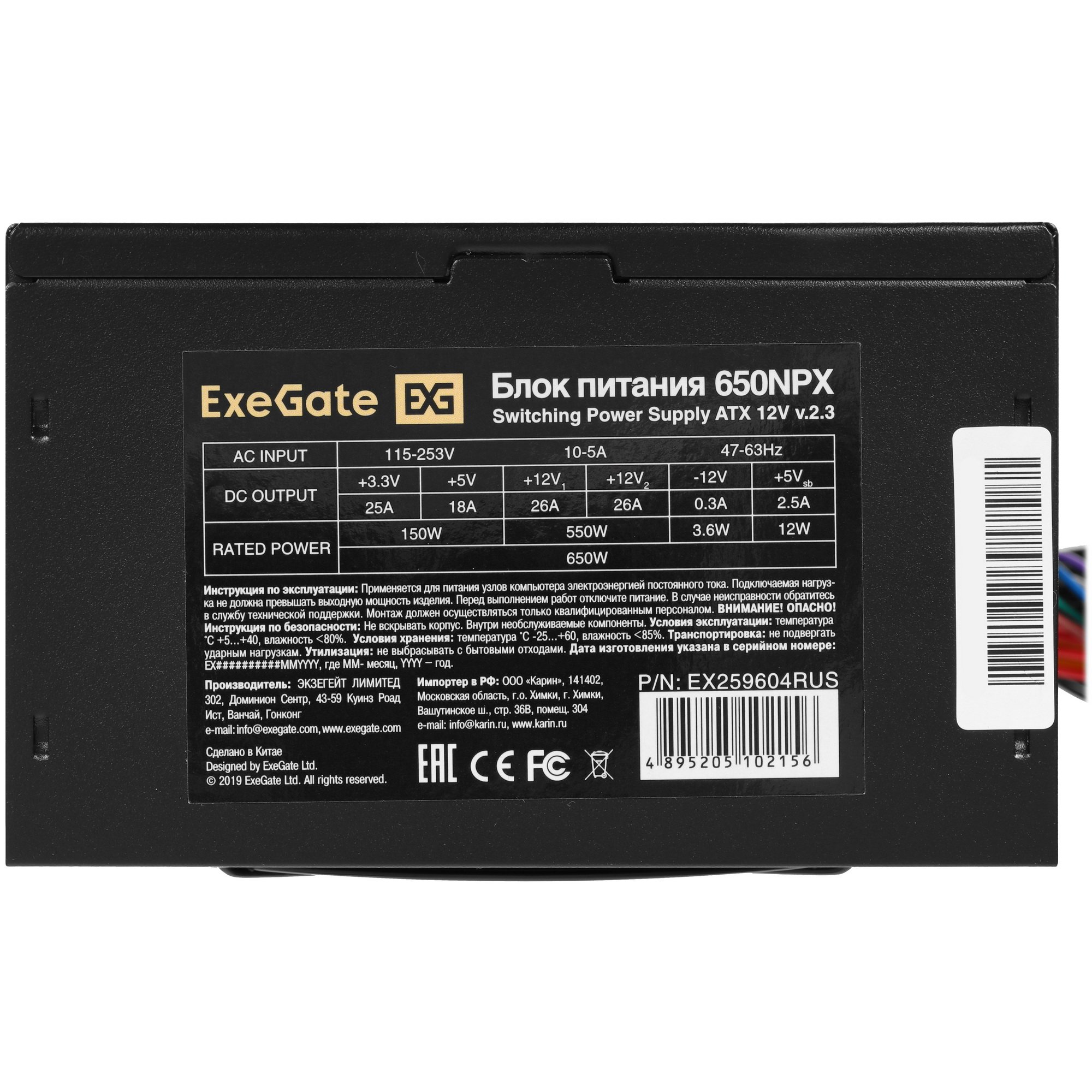 Блок питания ExeGate 650NPX (EX259604RUS), 650Вт, 120мм, черный