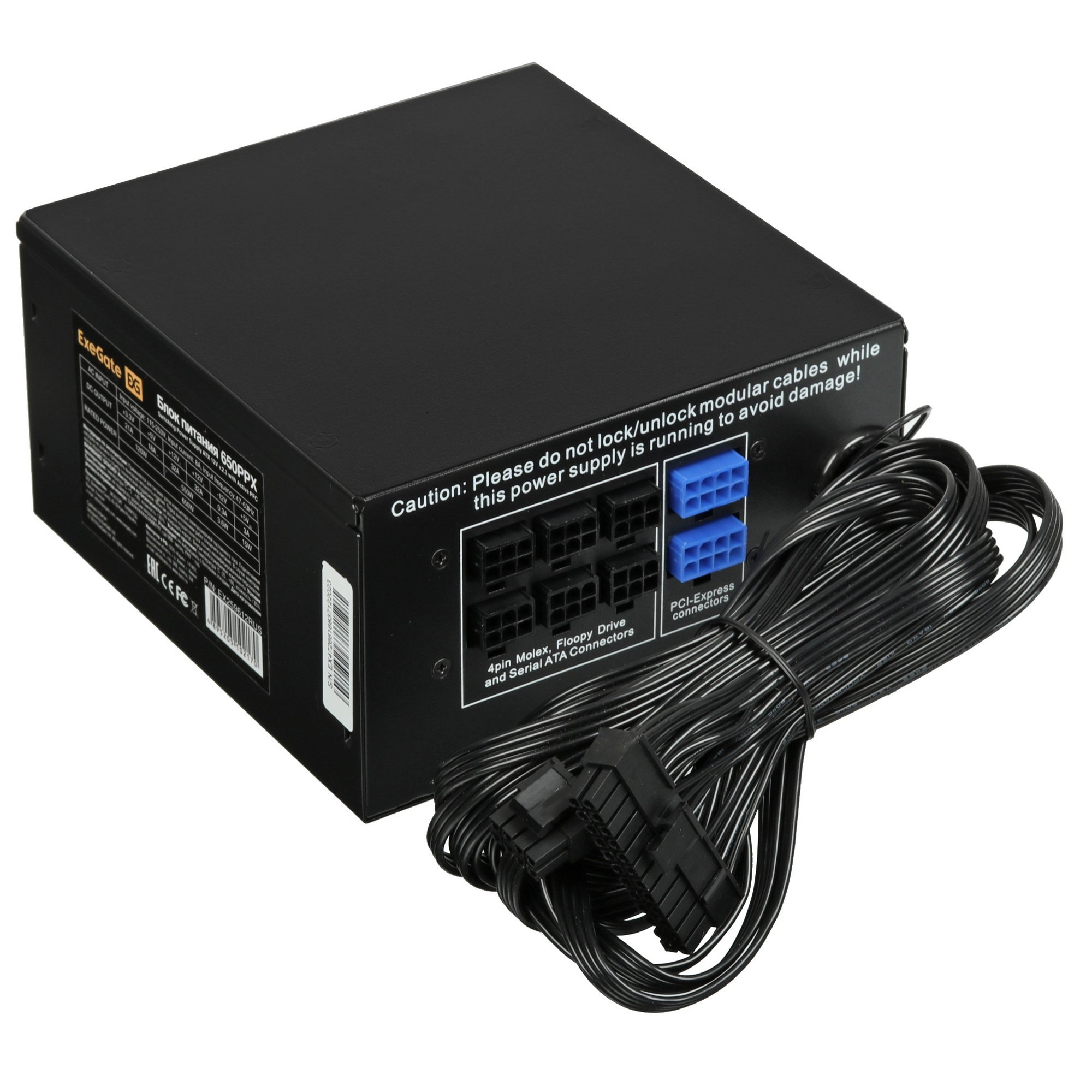 Блок питания ExeGate 650PPX RTL (EX259612RUS), 650Вт, 140мм, модульный, черный