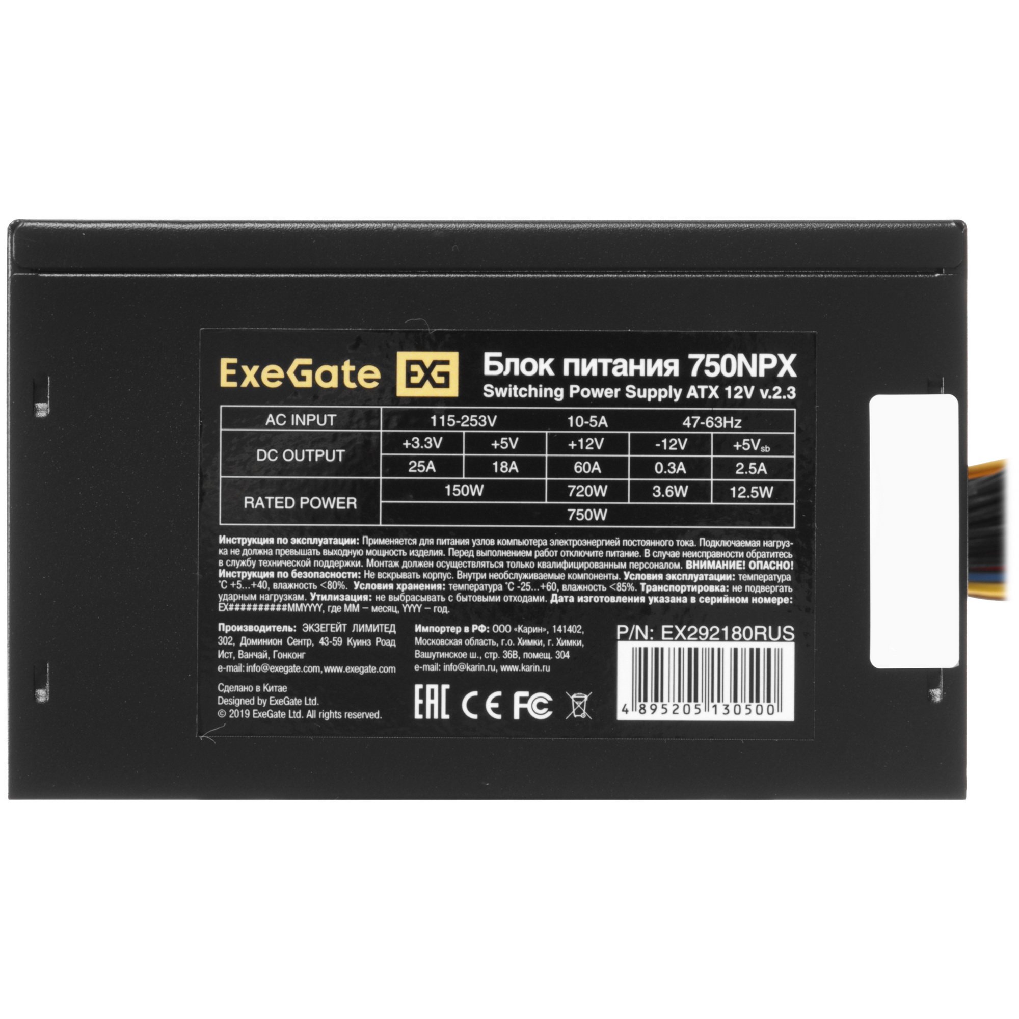 Блок питания ExeGate 750NPX (EX292180RUS), 750Вт, 120мм, черный