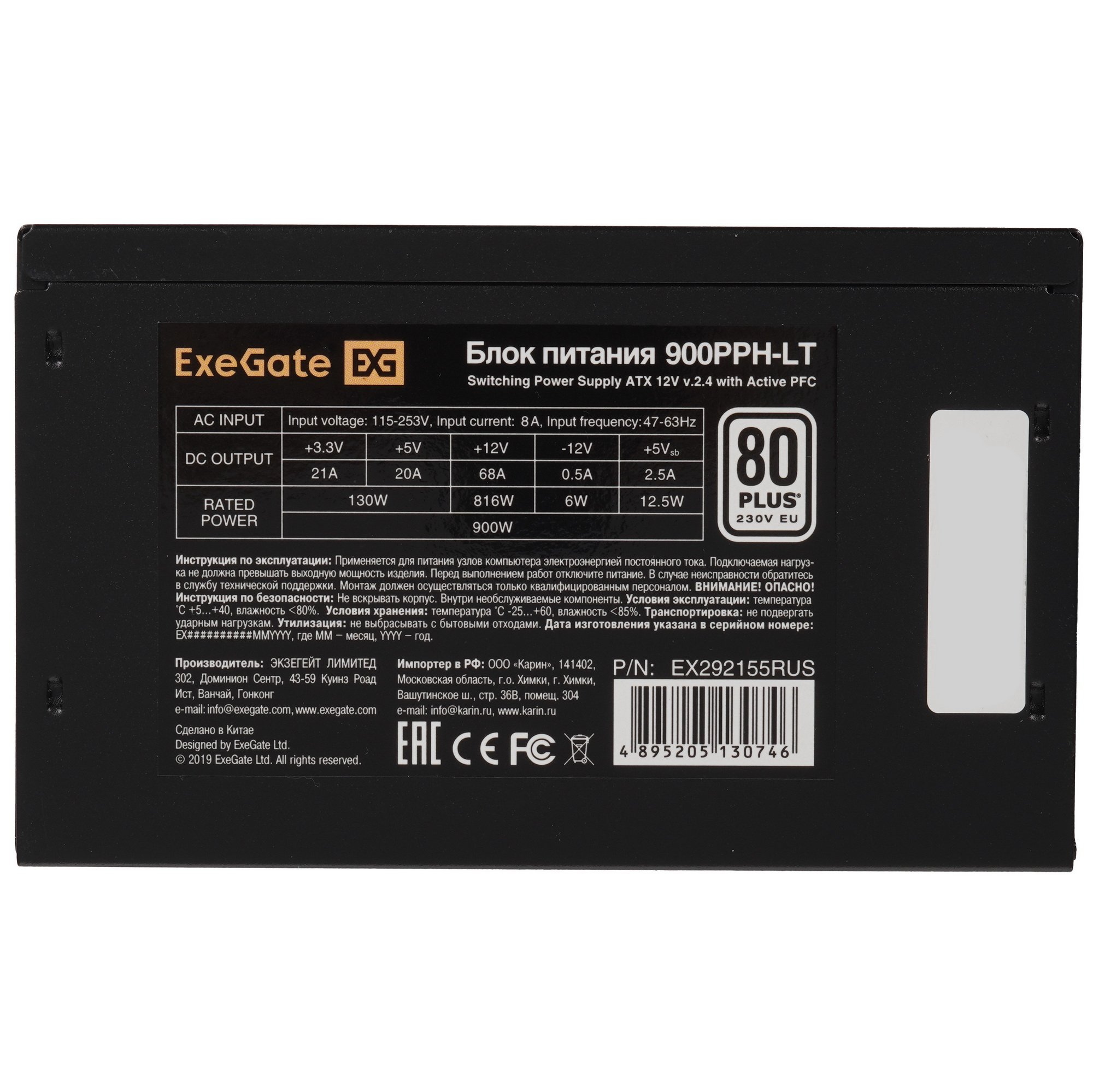 Блок питания ExeGate 900PPH-LT (EX292155RUS-S), 900Вт, 80 PLUS, 120мм, черный