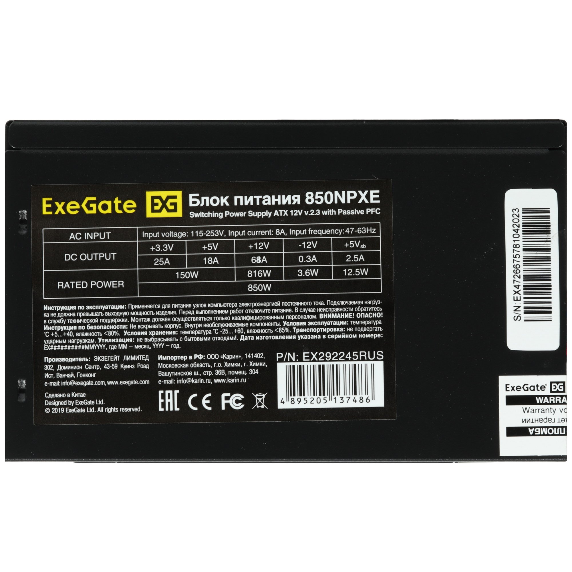 Блок питания ExeGate 850NPXE (EX292245RUS-PC), 850Вт, 120мм, черный