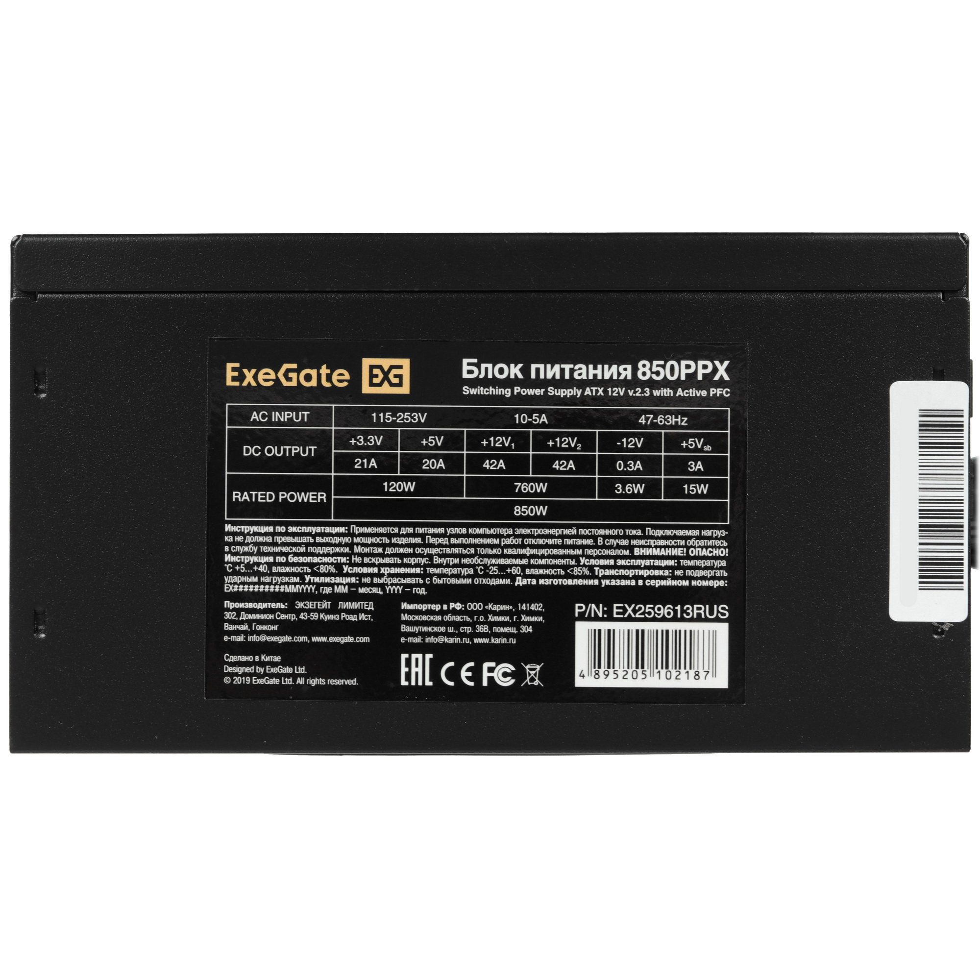 Блок питания ExeGate 850PPX (EX259613RUS), 850Вт, 140мм, модульный, черный