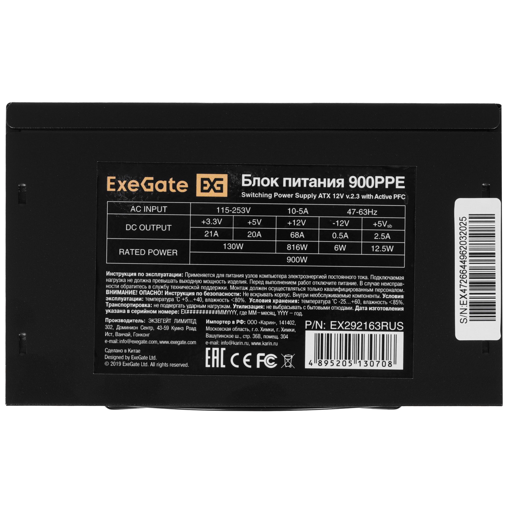 Блок питания ExeGate 900PPE (EX292163RUS-PC), 900Вт, 80 PLUS, 120мм, черный