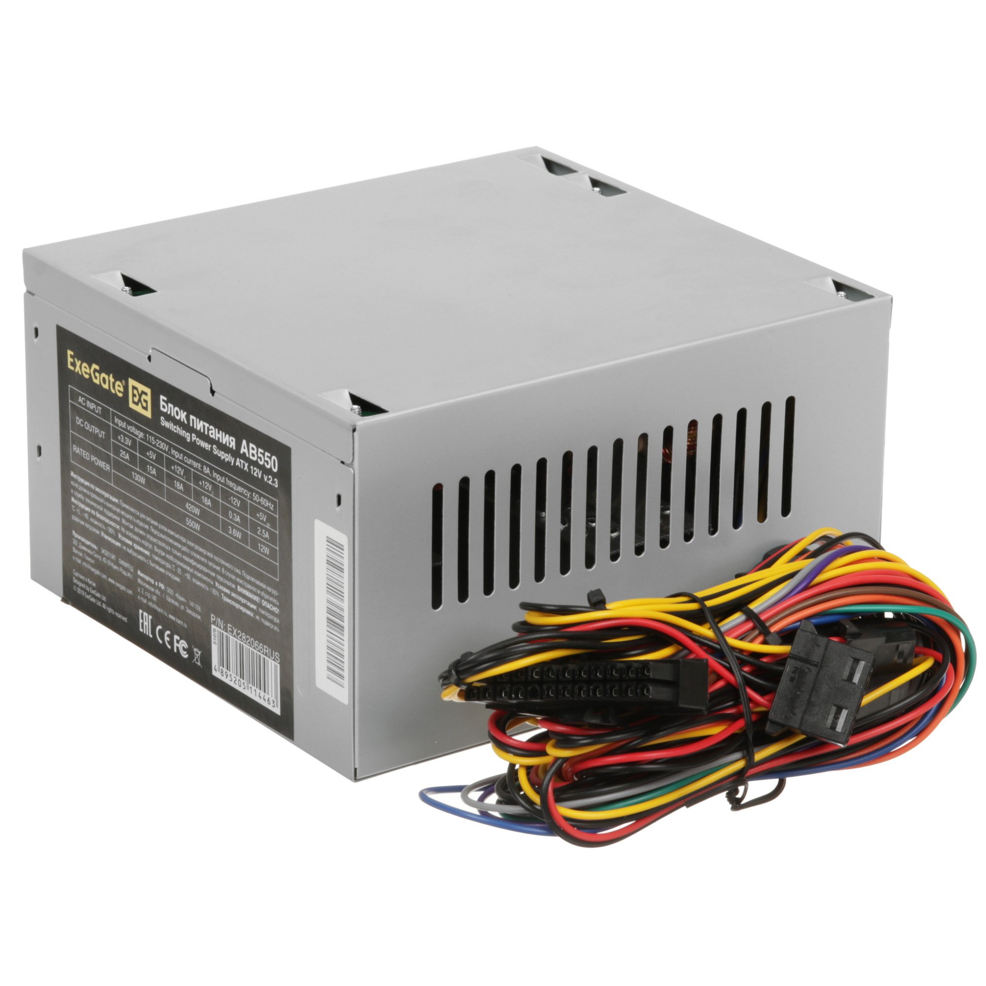 Блок питания ExeGate AB550 (EX282066RUS), 550Вт, 80мм, серебряный