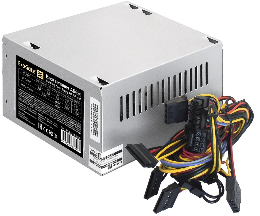 Блок питания ExeGate AB650 (EX292143RUS), 650Вт, 80мм, серебряный