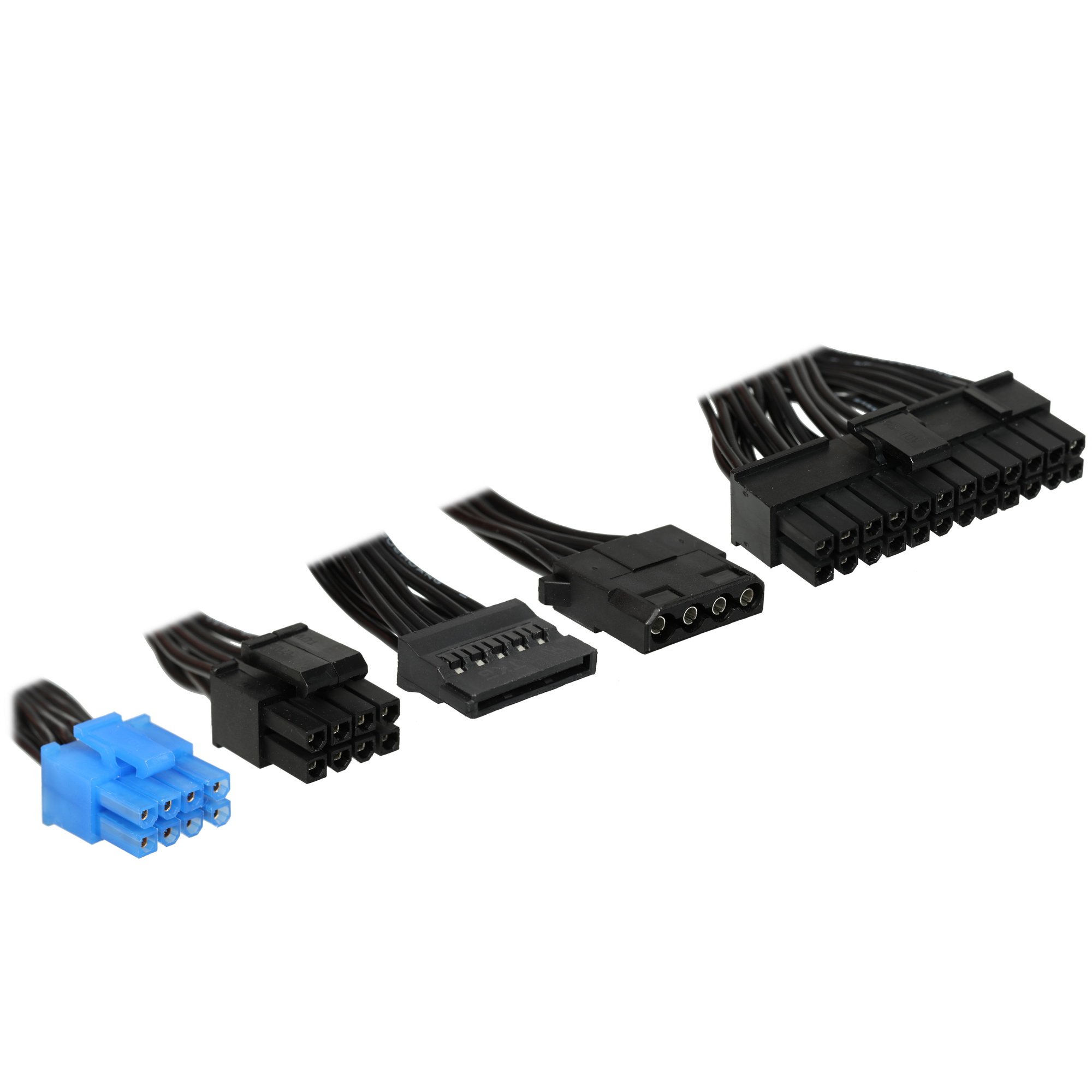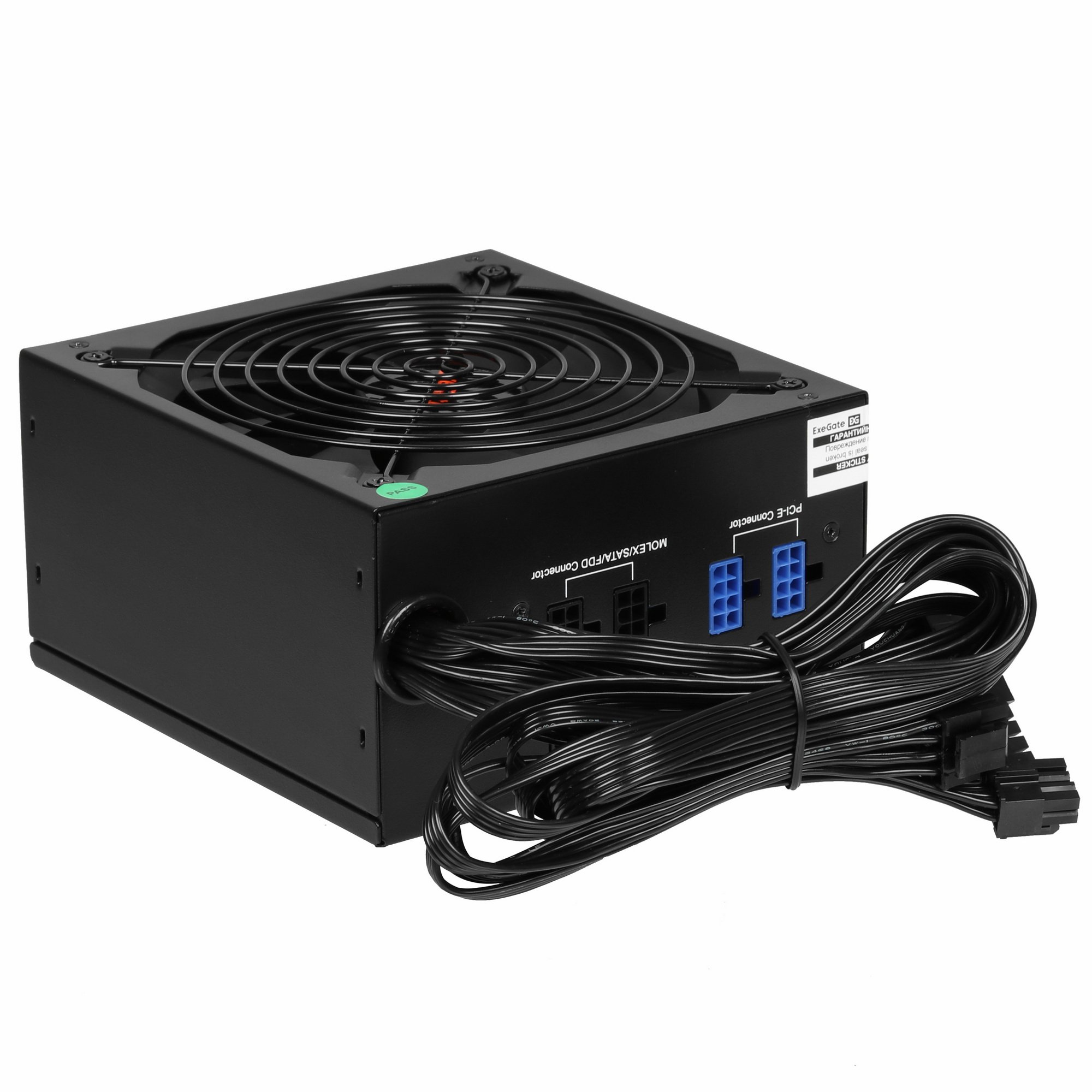Одной из особенностей блока питания ExeGate Gaming Standard 1200PGS является полумодульная конструкция кабелей. Она упрощает компоновку и уменьшает количество лишних проводов в корпусе. Среди разъемов присутствует основной 20+4 pin, 2 разъема 4+4 pin для процессора, 6 разъемов 6+2 pin для видеокарт. Для различного оборудования предусмотрены 4 разъема SATA и 5 разъемов Molex, дополнительно есть разъем для Floppy-дисковода. Система охлаждения использует вентилятор размером 140х140 мм. Он развивает скорость до 2000 об/мин при уровне шума около 25 дБ, что сопоставимо с негромким гулом системного блока.