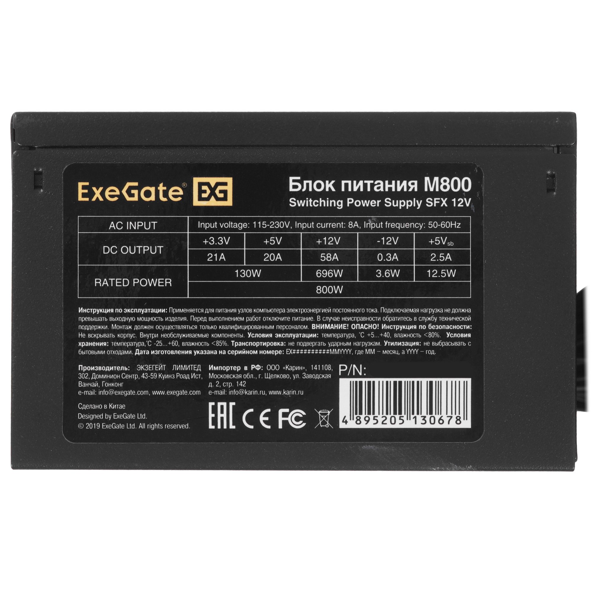 800-ваттный блок питания ExeGate M800 [EX292239RUS] форм-фактора SFX размещается в компактных корпусах. Мощность устройства достаточна для стабильного функционирования многоядерного процессора, видеокарты, большого количества накопителей, плат расширения и других системных компонентов. БП поддерживает наиболее востребованные защитные технологии – OCP, OPP, OTP, OVP, SCP и UVP.