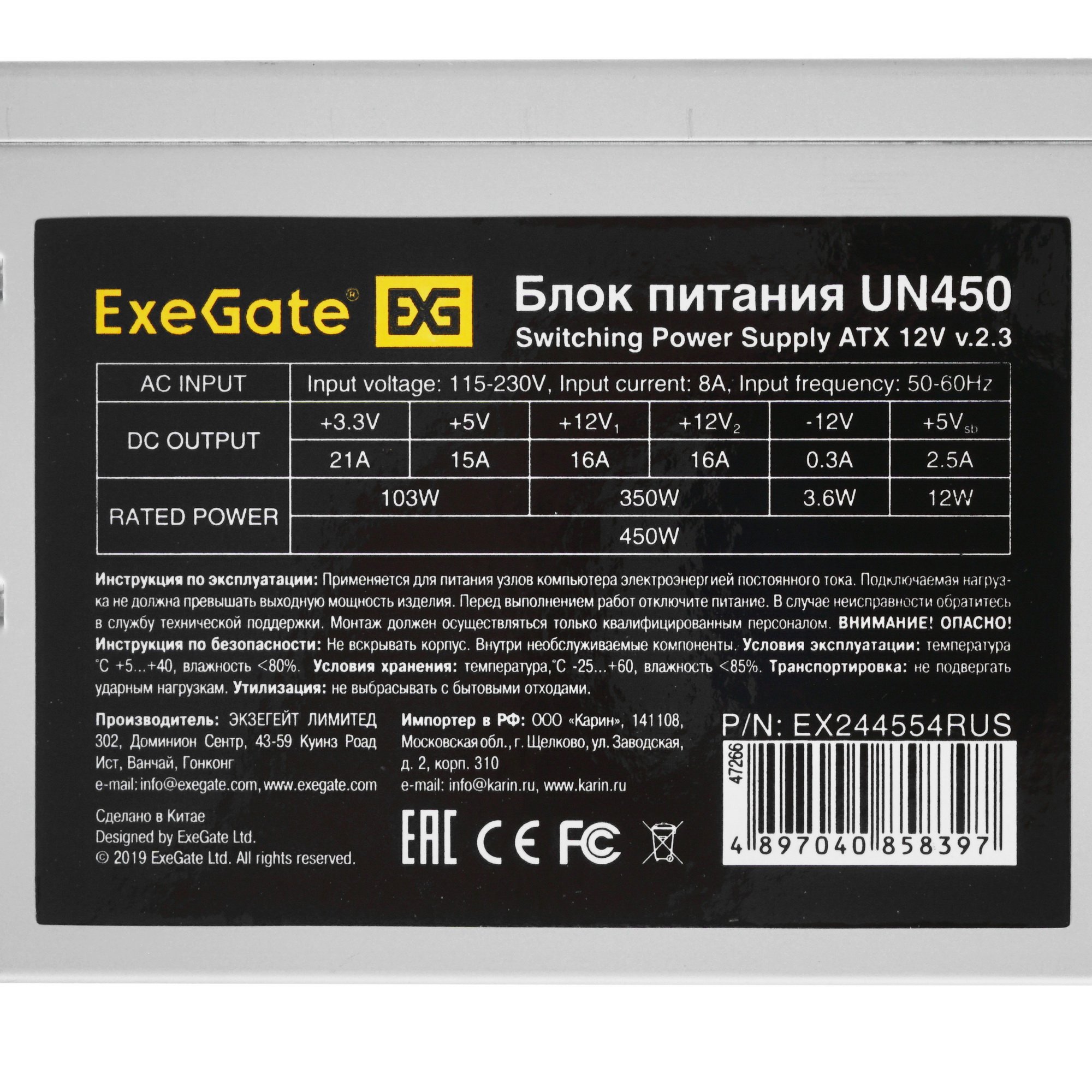 Блок питания ExeGate UN450 (EX244554RUS), 450Вт, 120Вт, серый
