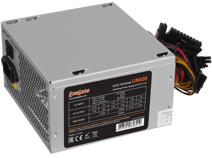 Блок питания ExeGate UN600, 600Вт, 120мм, серебряный
