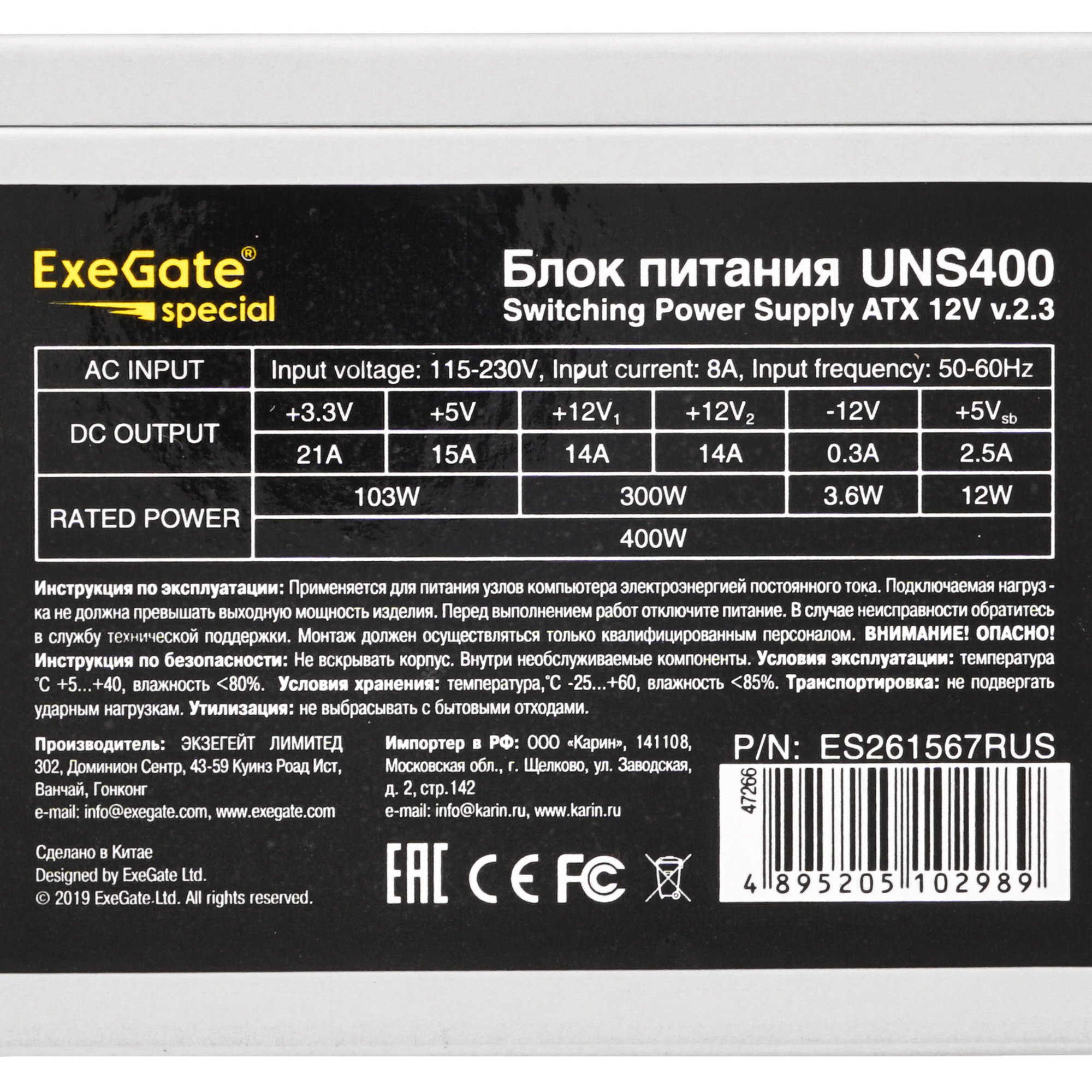 Блок питания ExeGate UNS400 (ES261567RUS), 400Вт, 120мм, серый