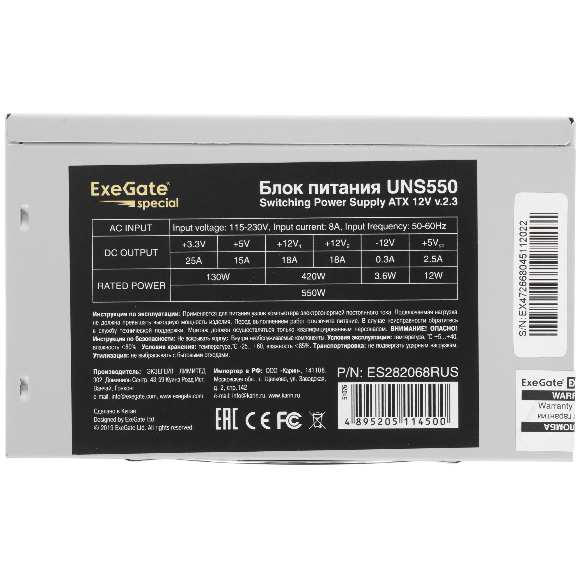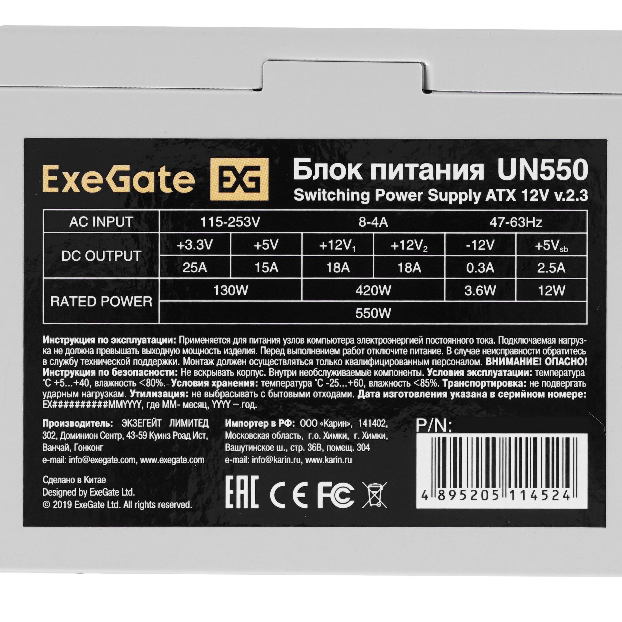 Блок питания ExeGate UNS550 (ES282068RUS), 550Вт, 120мм, серый