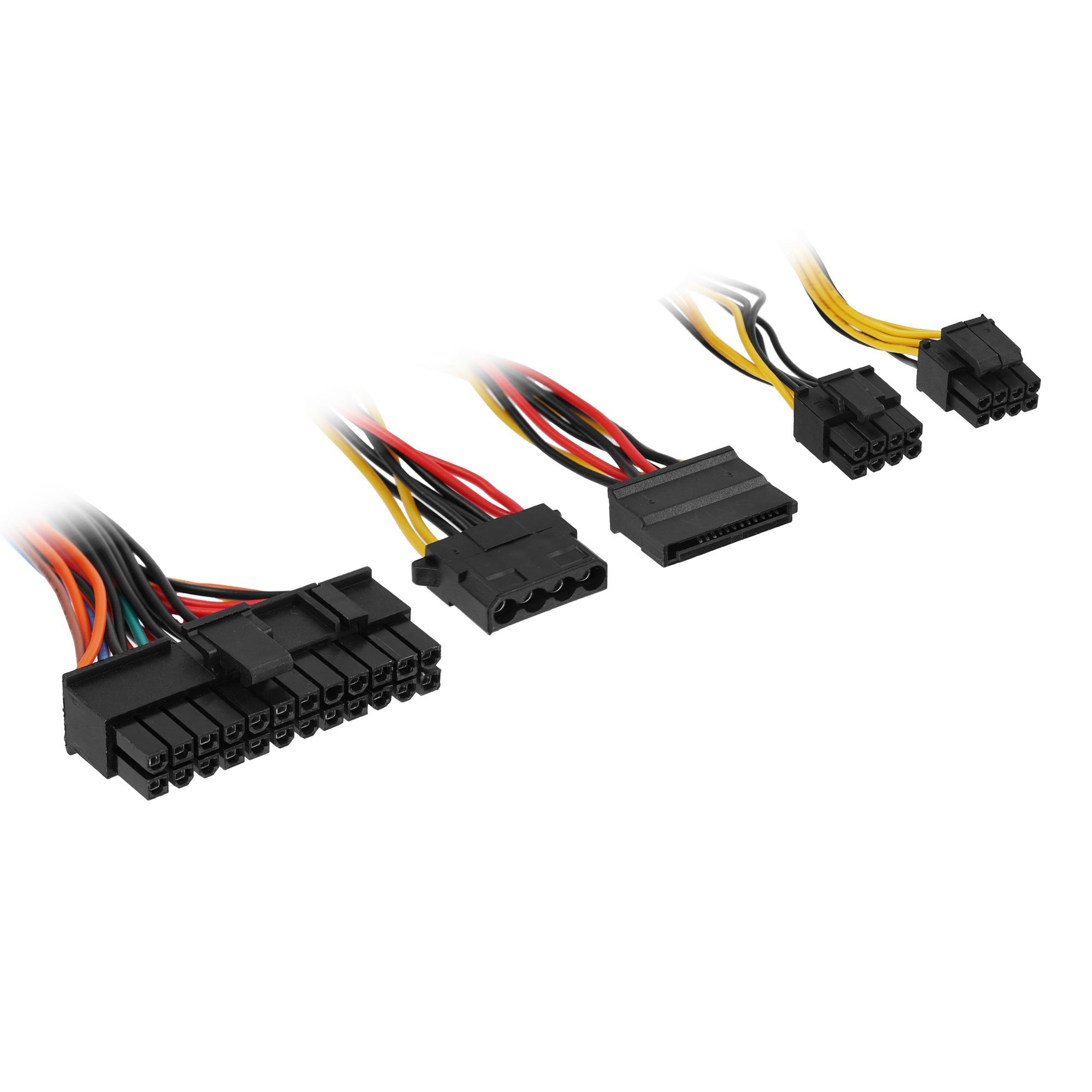 Блок питания ExeGate UN550 предназначен для типовых компьютерных систем, которые требуют энергопотребления на уровне 550 Вт. Система подключения компонентов включает основной разъем питания 20+4 pin, 2 разъема 4+4 pin для процессора и 2 разъема 6+2 pin для видеокарты. Дополнительное оборудование, включая накопители данных, можно подключить через 5 разъемов SATA и 3 разъема Molex.