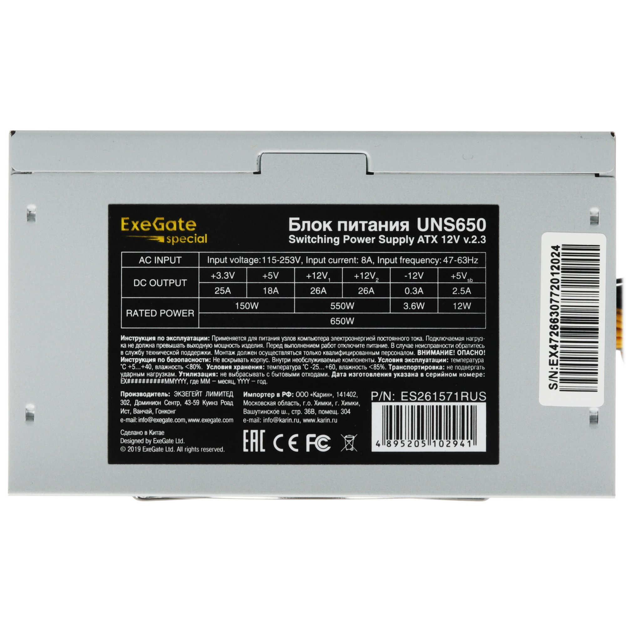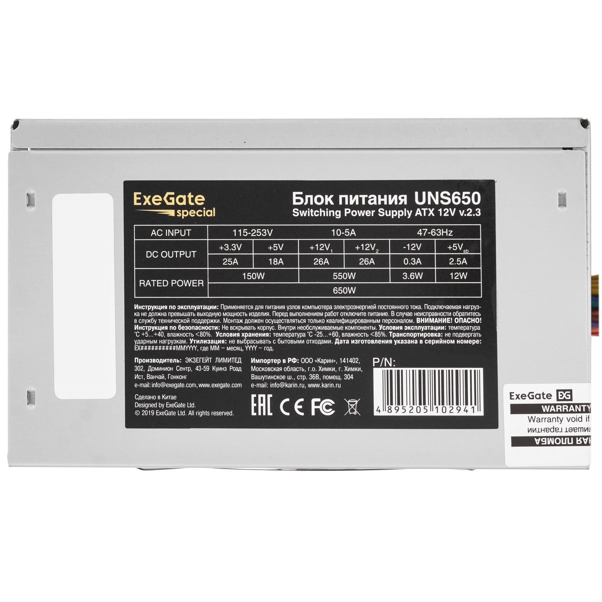 Блок питания ExeGate UNS650 (ES261571RUS), 650Вт, 120мм, серый