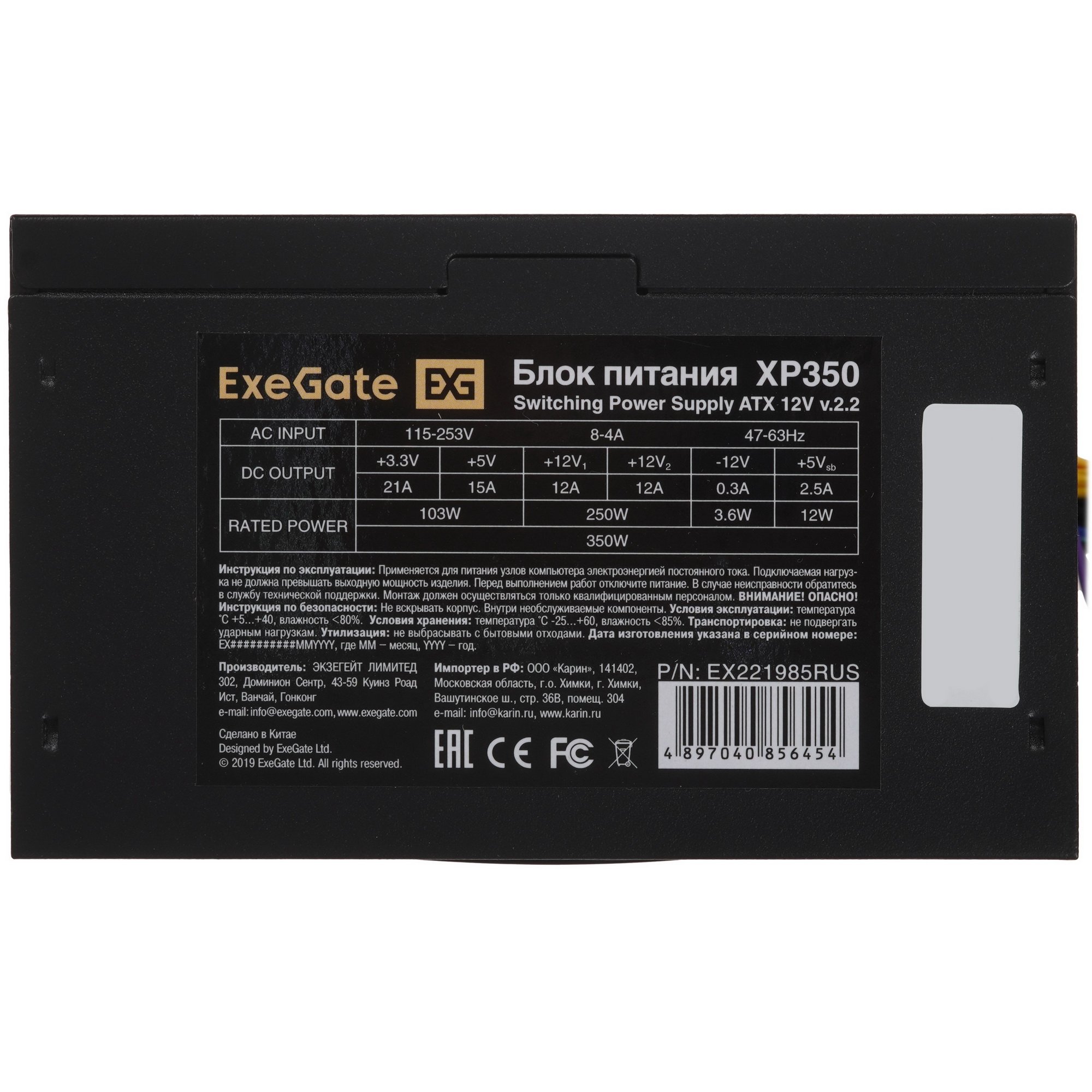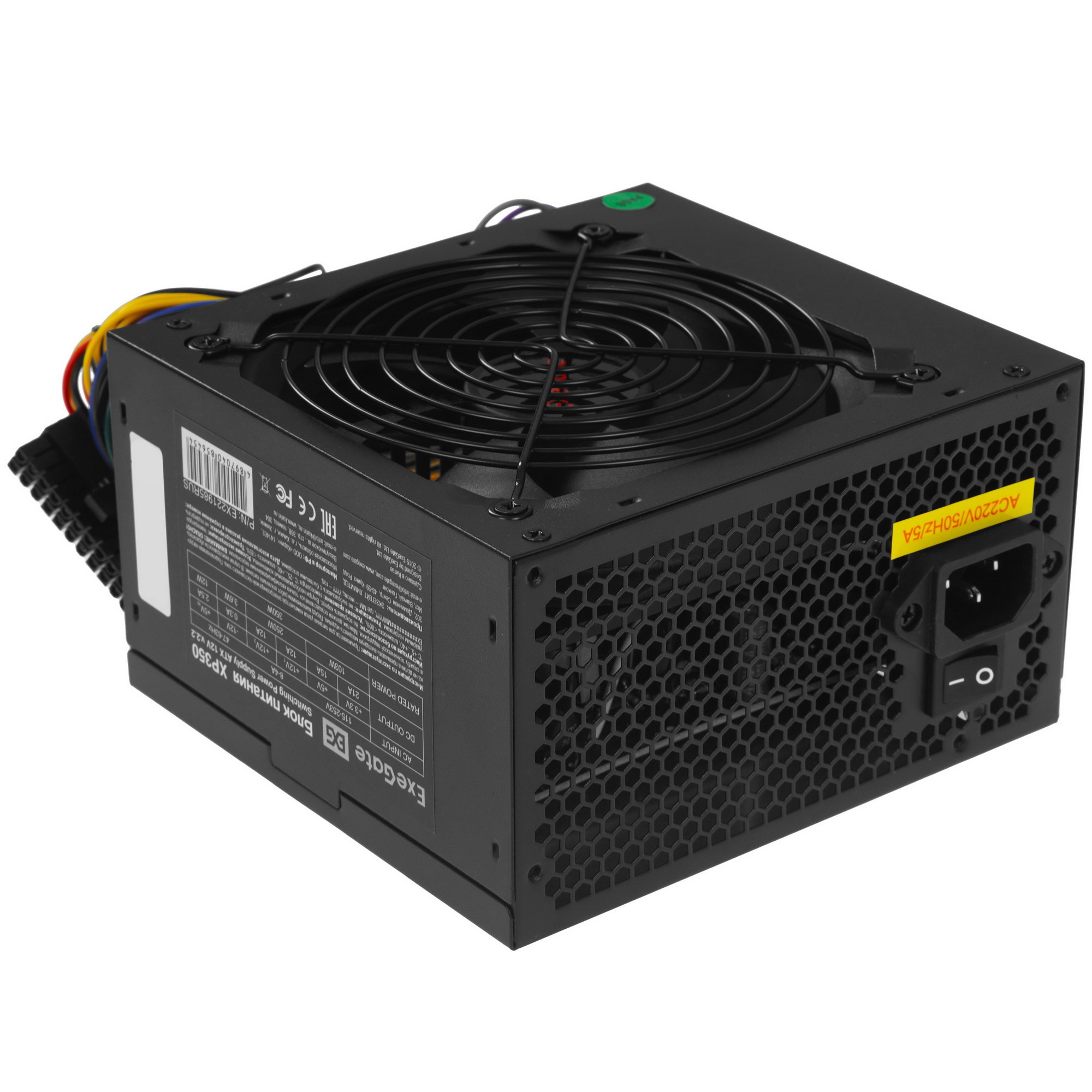 Блок питания ExeGate XP350 [EX221985RUS] черного цвета – оснащение для офисных и домашних компьютеров начального уровня. Такие системные блоки обычно используются для работы с документами и в Интернете. Номинальная мощность источника питания составляет 350 Вт, а мощность по 12-вольтовой линии – 250 Вт. Показатели достаточны для стабильной работы процессора и видеокарты с низким энергопотреблением, нескольких накопителей, адаптеров, контроллеров, вентиляторов и других системных компонентов. Модель поддерживает наиболее востребованные технологии защиты – OCP, OPP, OTP, OVP, SCP и UVP.
