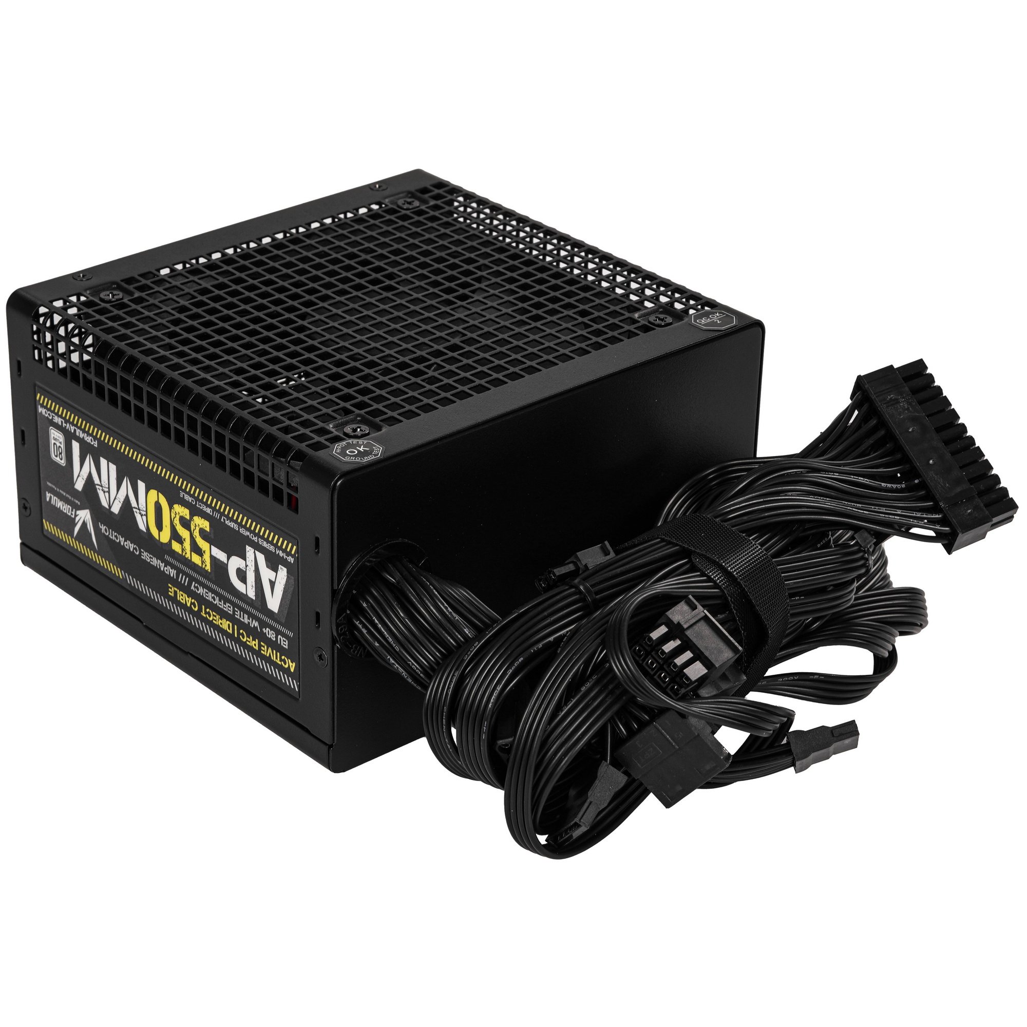 Блок питания Formula AP-550ММ с номинальной мощностью 550 Вт способен обеспечить электроэнергией комплектующие в офисном или домашнем компьютере. Устройство прошло сертификацию по стандарту 80 PLUS Standart, которая подтверждает его КПД на уровне 80%. Для подключения к материнской плате блок питания Formula AP-550ММ использует разъем 20+4 pin, а для питания процессора и видеокарты предусмотрены интерфейсы 4+4 pin и 2 x 6+2 pin. Для предотвращения перегрева устройства имеется 120-миллиметровый вентилятор с автоматической регулировкой оборотов.