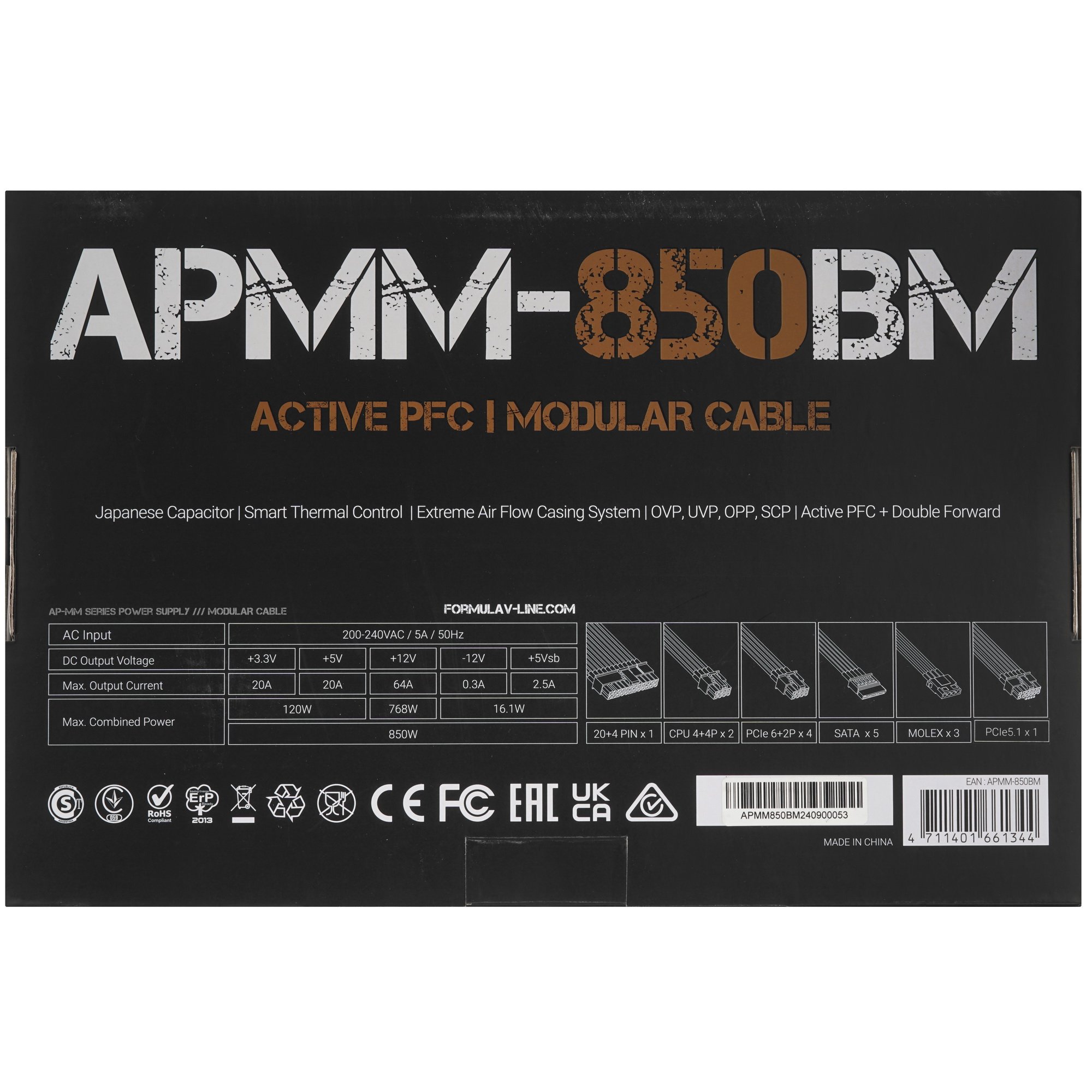 APMM-850BM имеет сертификат 80Plus Bronze 230V EU, обеспечивая эффективность до 88%+ для оптимизированной работы системы.