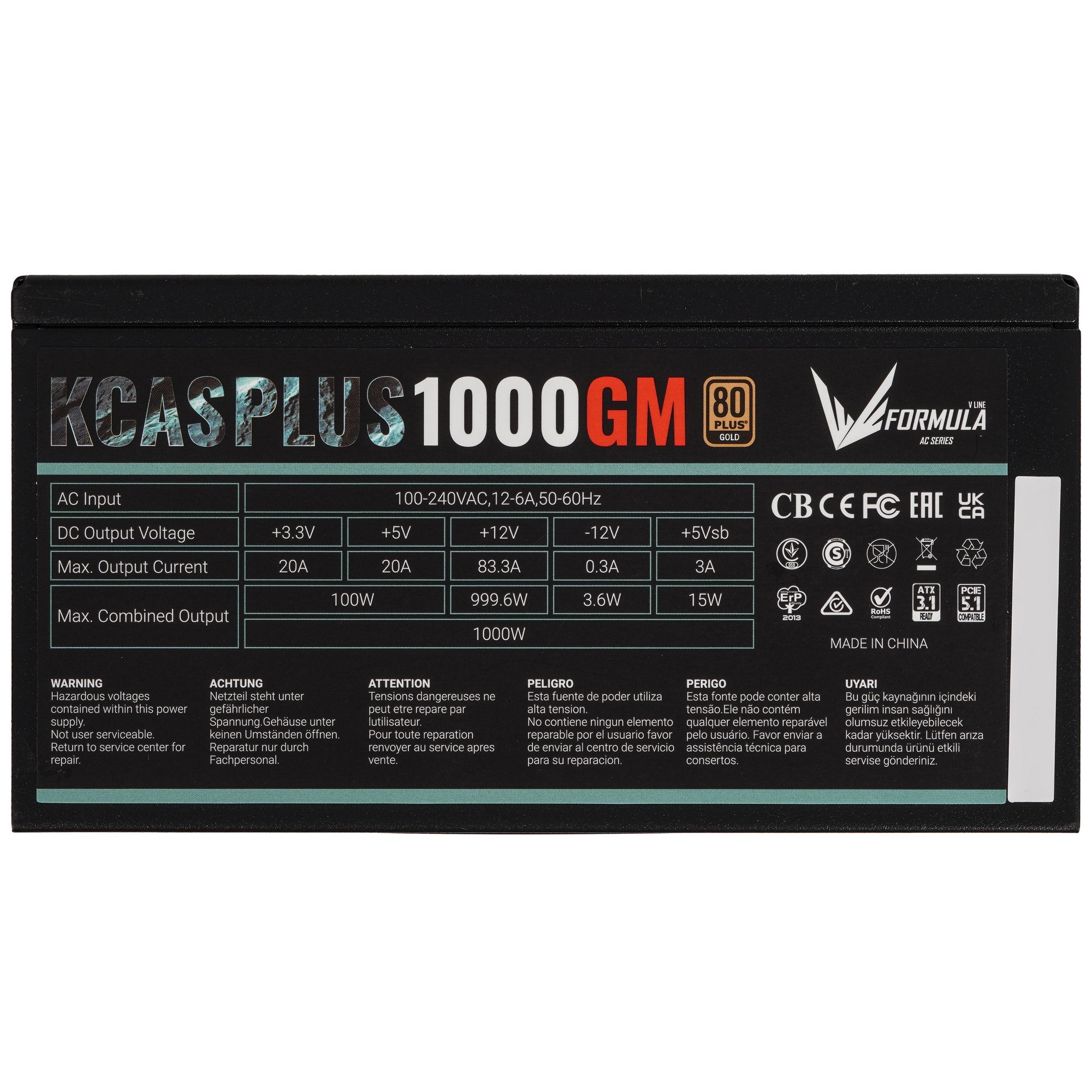 Блок питания Aerocool / Formula KCAS PLUS 1000GM V2 RTL (ACPG-KPK0FEC.12), 1000Вт, 80 PLUS Gold, 140мм, модульный, черный