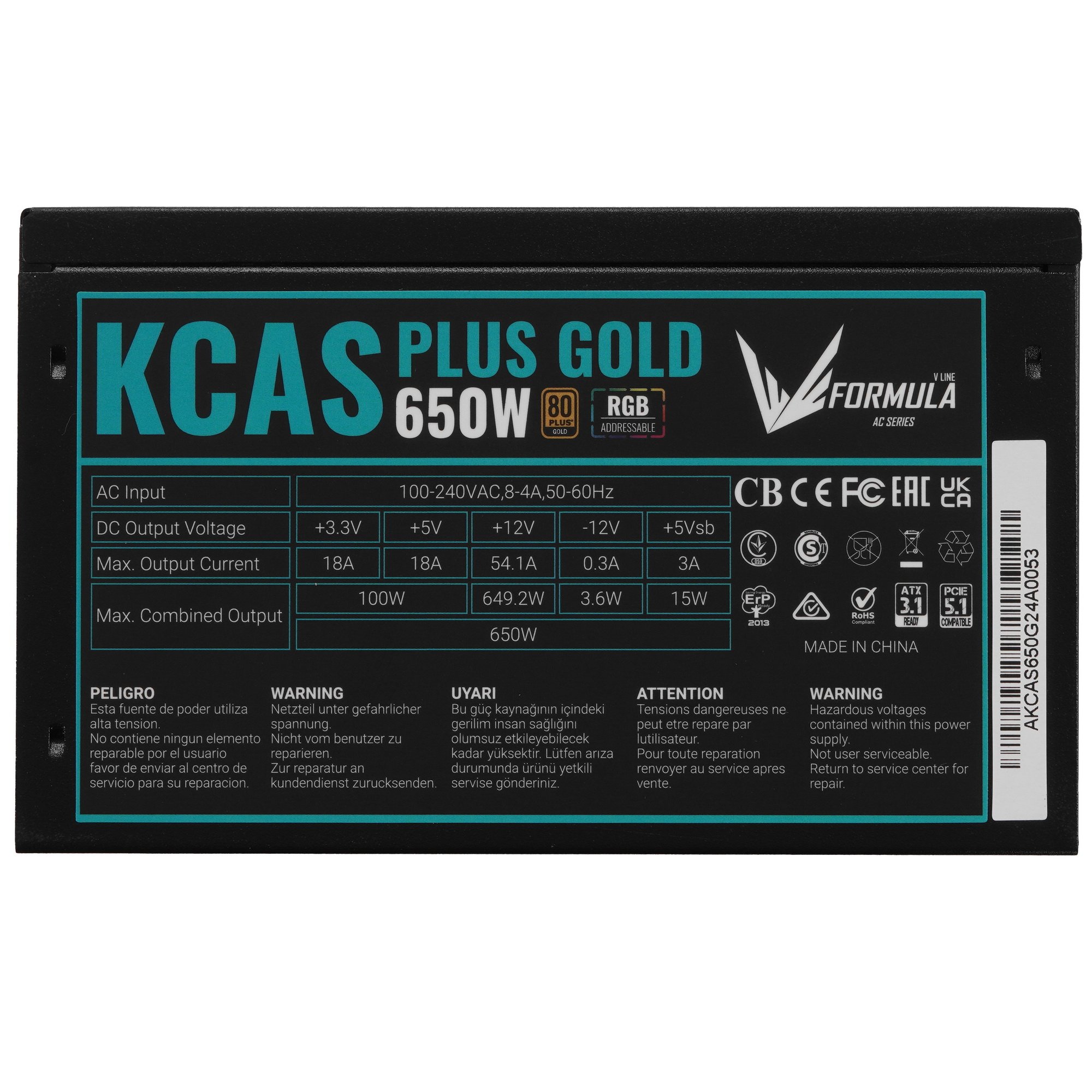 Блок питания Aerocool / Formula KCAS PLUS 650G, Gold 650Вт, 80 PLUS Gold, 120мм, черный