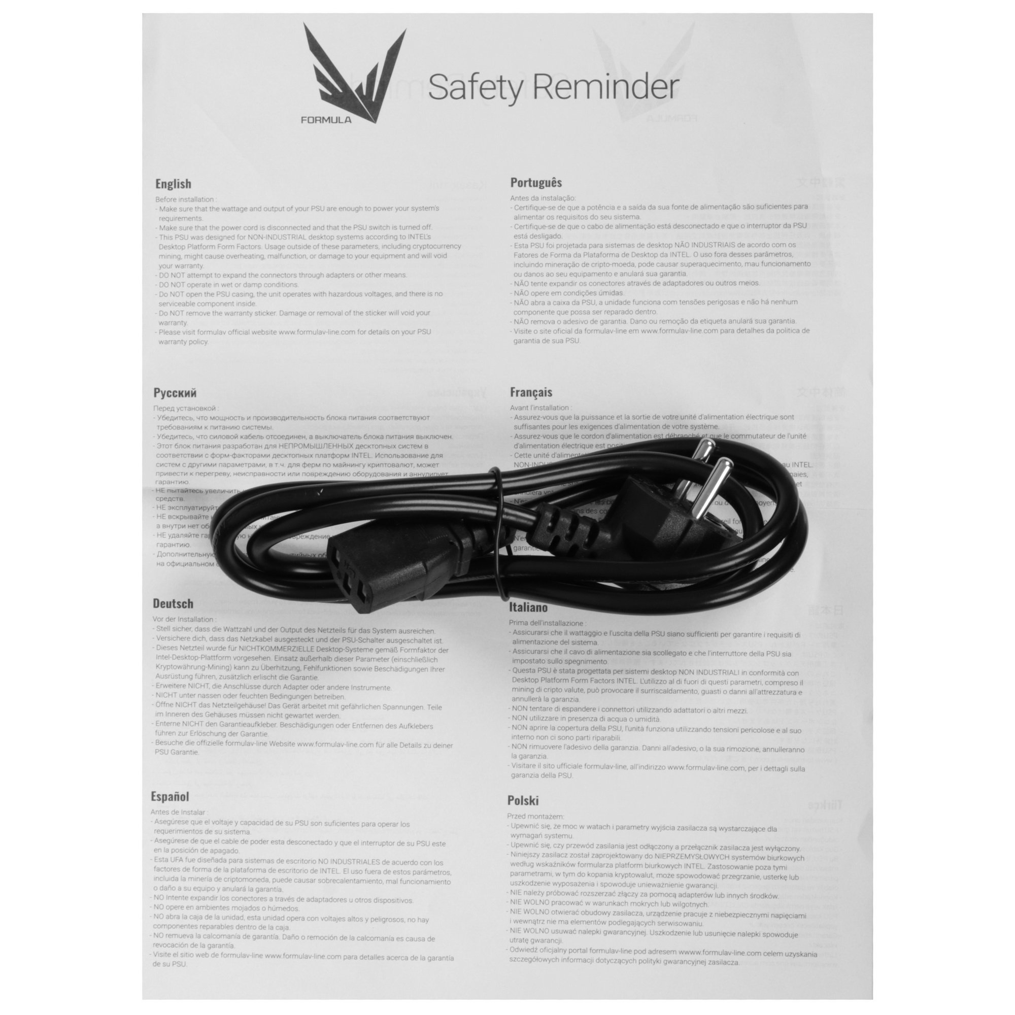 Блок питания Formula V Line FX-400 обладает номинальной мощностью 400 Вт, что позволит задействовать его в офисных и домашних компьютерах с нересурсоемкими компонентами. Модель предусматривает активный корректор коэффициента мощности для стабильного электропитания комплектующих. При повышенных нагрузках на блок питания Formula V Line FX-400 вентилятор диаметром 120 мм с автоматической регулировкой оборотов предотвратит его перегрев. Форм-фактор ATX позволит разместить устройство в большинстве компьютерных корпусов.