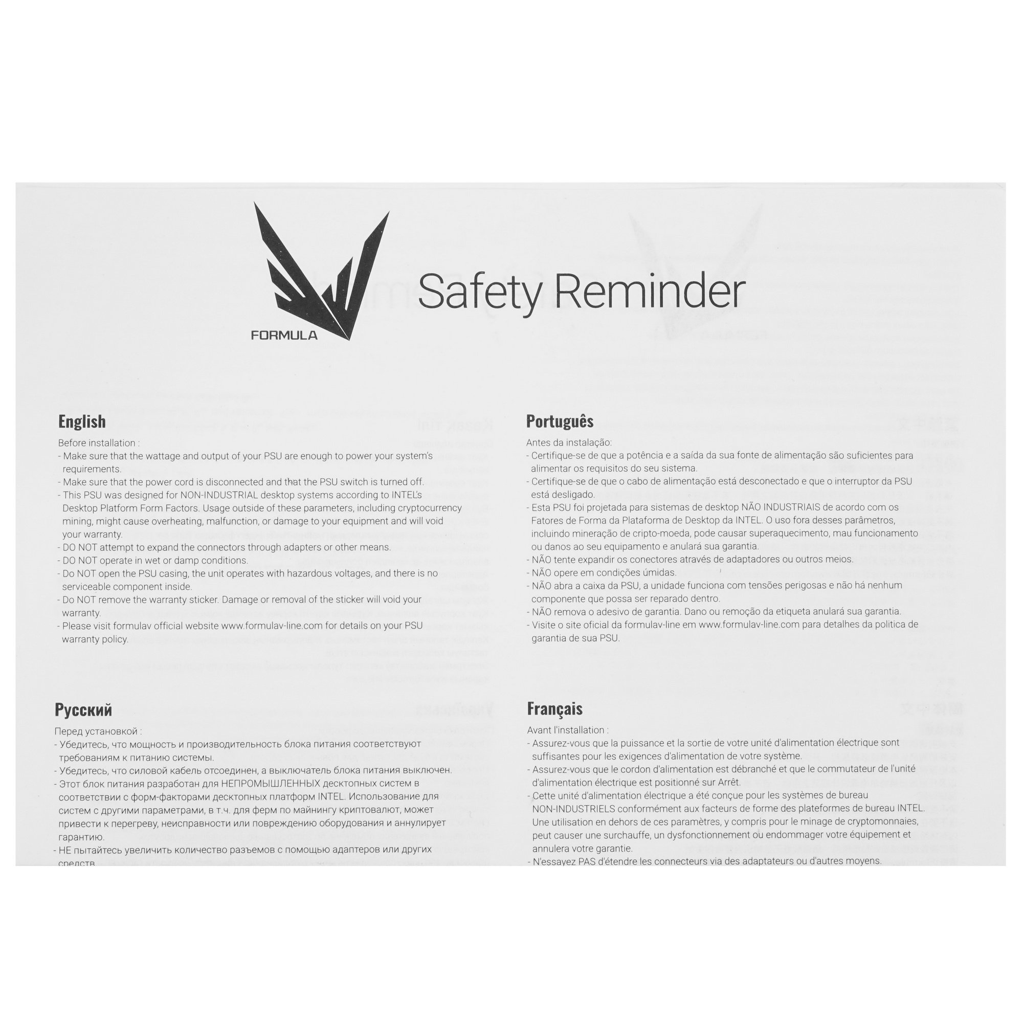 Блок питания Formula-V Line предназначен для электропитания систем высокого уровня. Модель собрана из компонентов высокого качества и отличаются стабильной и надежной работой.