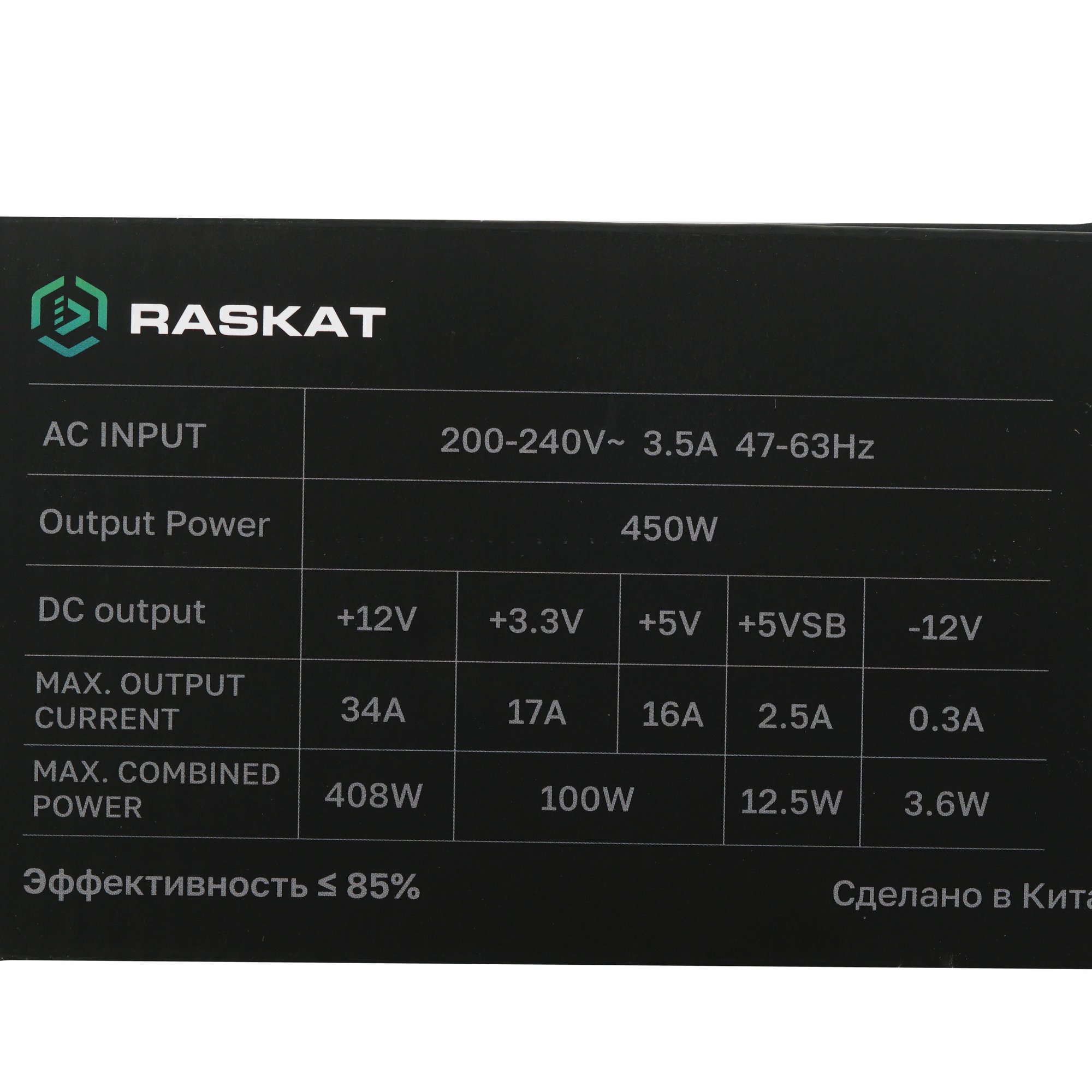Блок питания Raskat RPS-BN450 мощностью 450 Вт выполнен в черном корпусе. Он обеспечивает стабильное питание домашних и офисных компьютерных систем. Благодаря APFC устройство уменьшает нагрузку на сети, эффективно используя энергию. Это позволяет системе работать надежно и не издавать сильного шума.