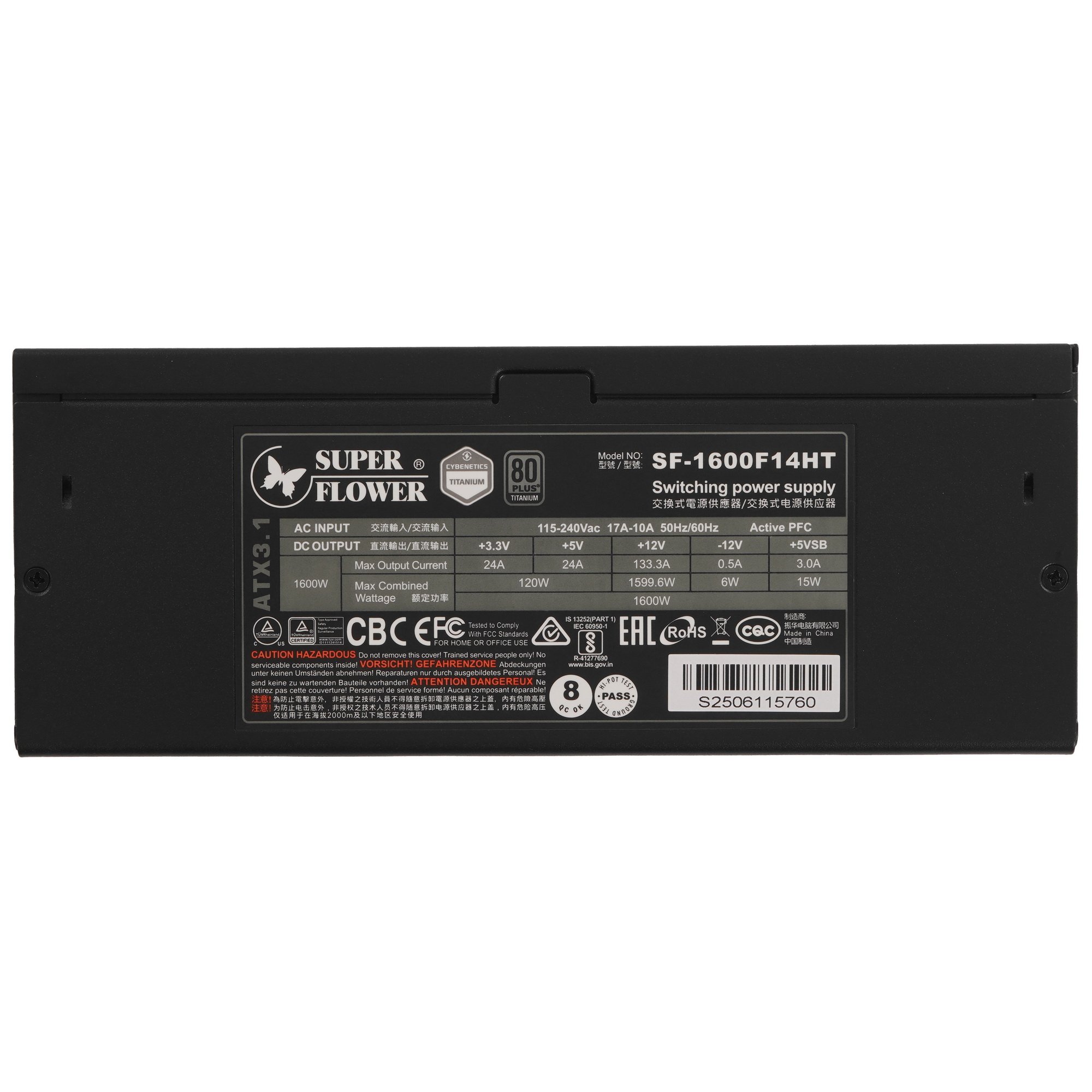 Блок питания Super Flower Leadex Titanium (SF-1600F14HT), 1600Вт, 80 PLUS Titanium, 140мм, модульный, черный