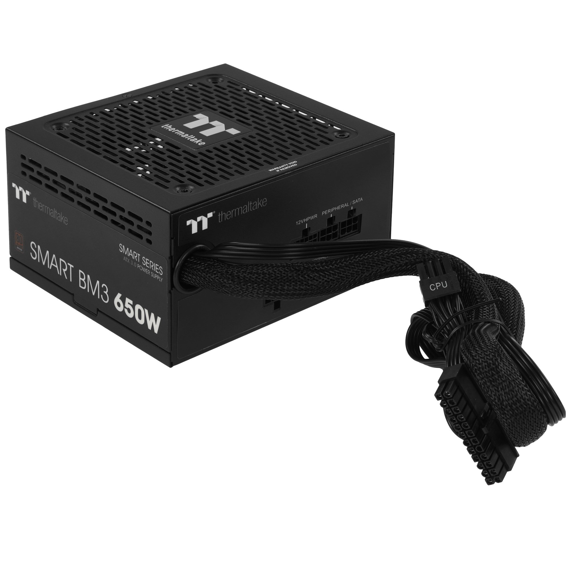 Частично модульный блок питания Thermaltake Smart BM3 Bronze 650W - TT Premium Edition с сертификатом 80 PLUS Bronze, соответствующий спецификациям Intel ATX 3.0. Благодаря наличию штатного разъема PCIe Gen 5.0 он может питать графические процессоры последнего поколения начального уровня с помощью одного кабеля 12VHPWR. Для предотвращения перегрева используется охлаждение, представленное вентилятором диаметром 120 мм.