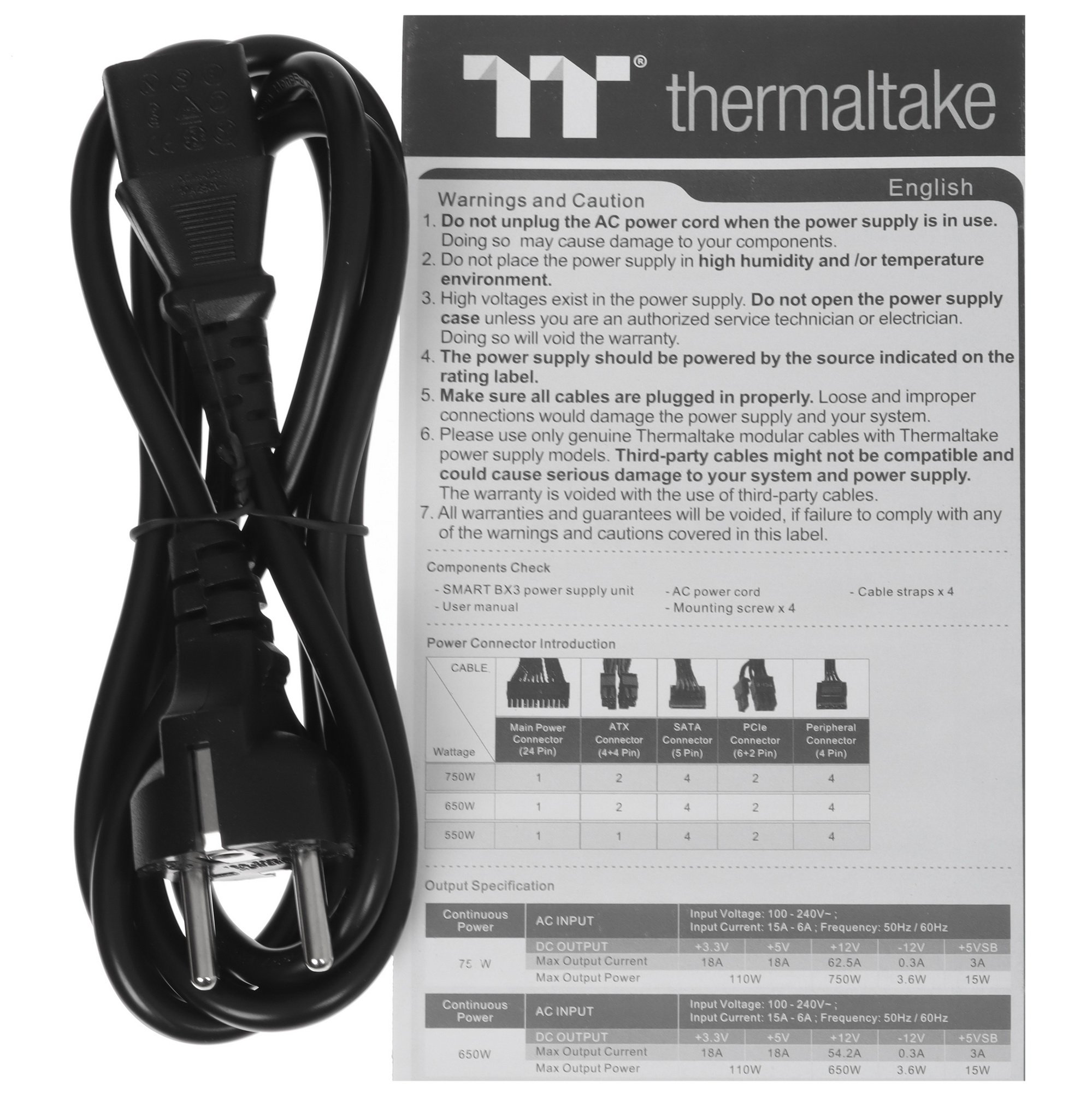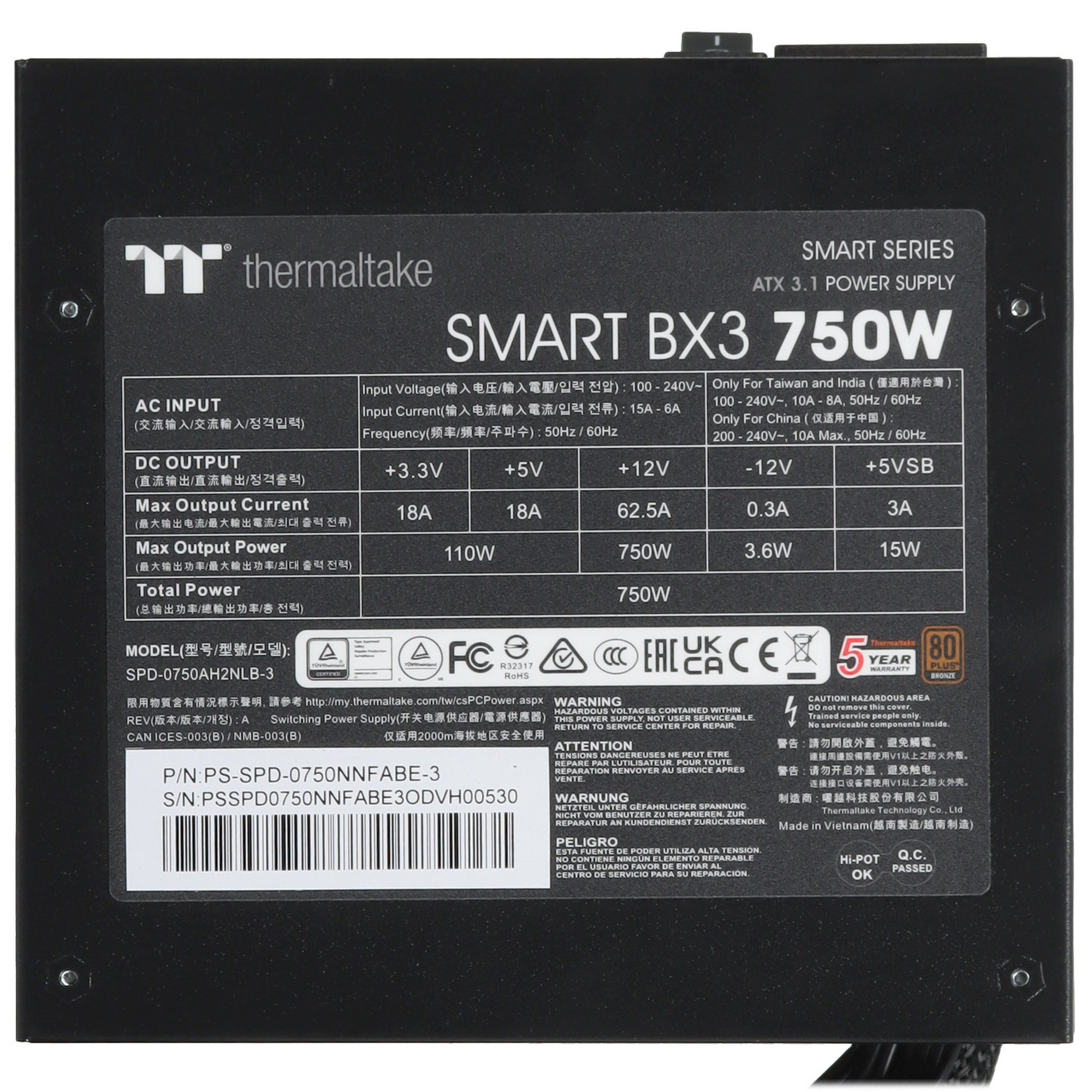 Блок питания Thermaltake Smart PS-SPR-0750NHSABE-1, 750Вт, 80 PLUS Bronze, 120мм, черный