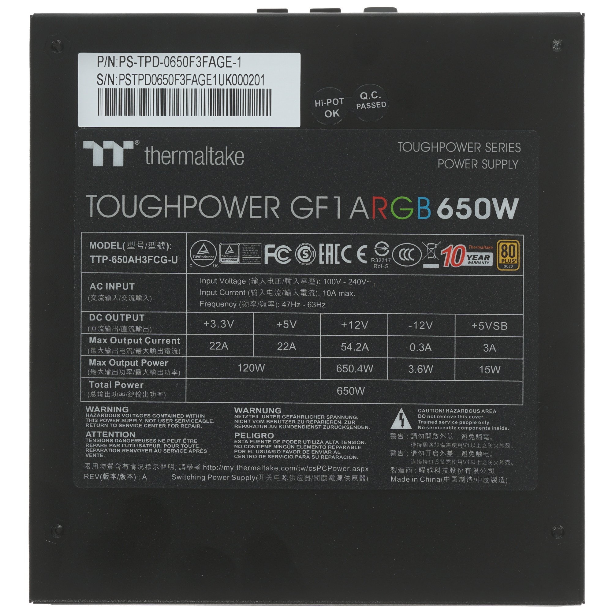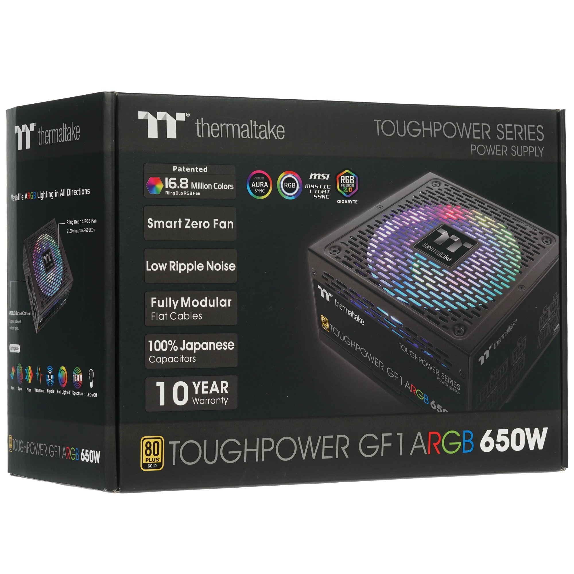 Блок питания Thermaltake Toughpower GF1 ARGb RTL (PS-TPD-0650F3FAGE-1), 650Вт, 80 PLUS Gold, 140мм, модульный, черный