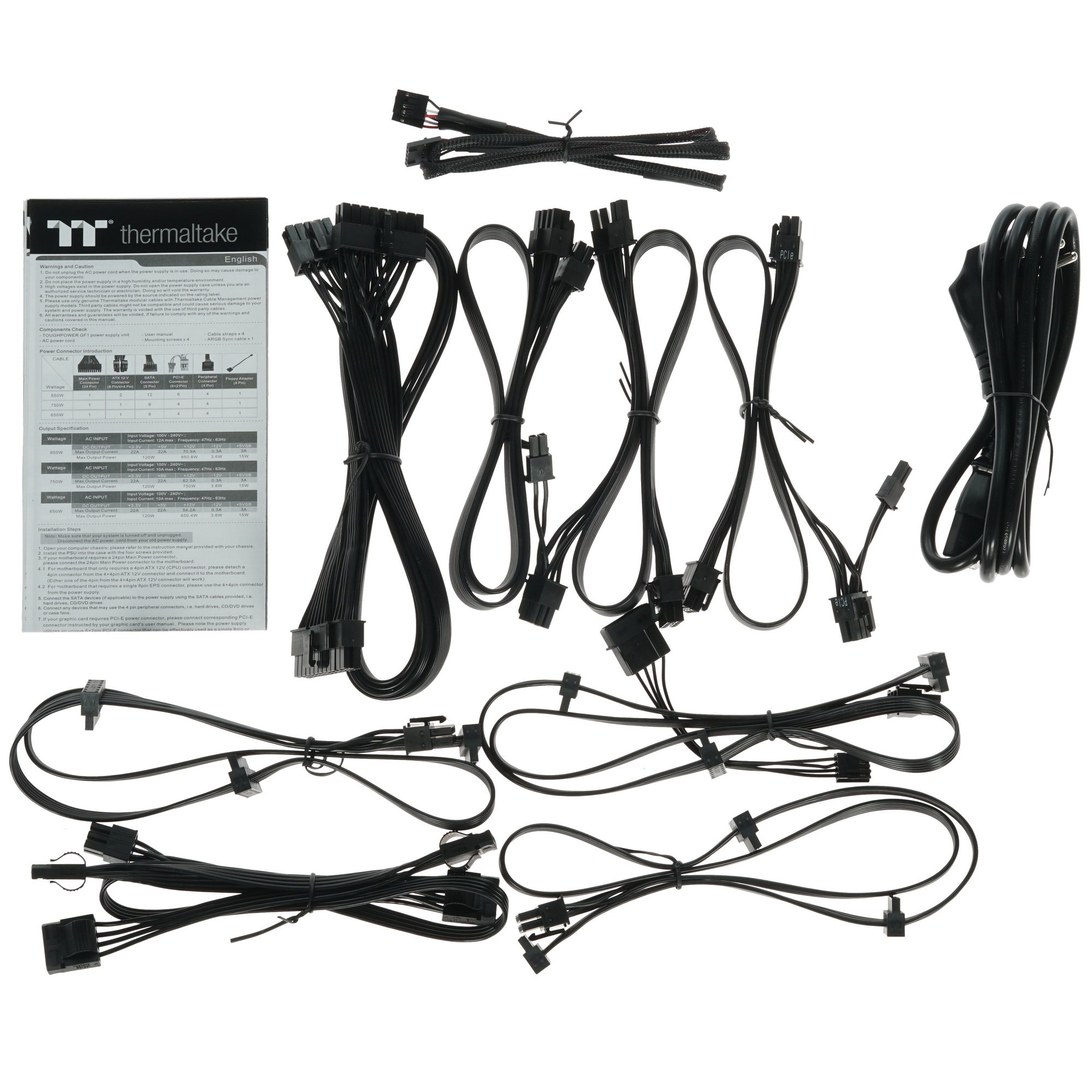 Блок питания Thermaltake Toughpower GF1 ARGB 650W [PS-TPD-0650F3FAGE-1] выполнен в корпусе формата ATX с многоцветной RGB-подсветкой, имеет модульную конструкцию и длинные кабели, что способствует удобному и простому подключению. Для подачи основного питания используется разъем (20+4)-pin. Подключение процессора осуществляется через 1 выход (4+4)-pin, а видеокарты — через 4 коннектора (6+2)-pin. Также модель оснащена 9 портами на 15-pin для SATA-устройств, 4 Molex и 1 Floppy. Блок питания поставляется вместе с набором кабелей, стяжками и крепежными винтами.