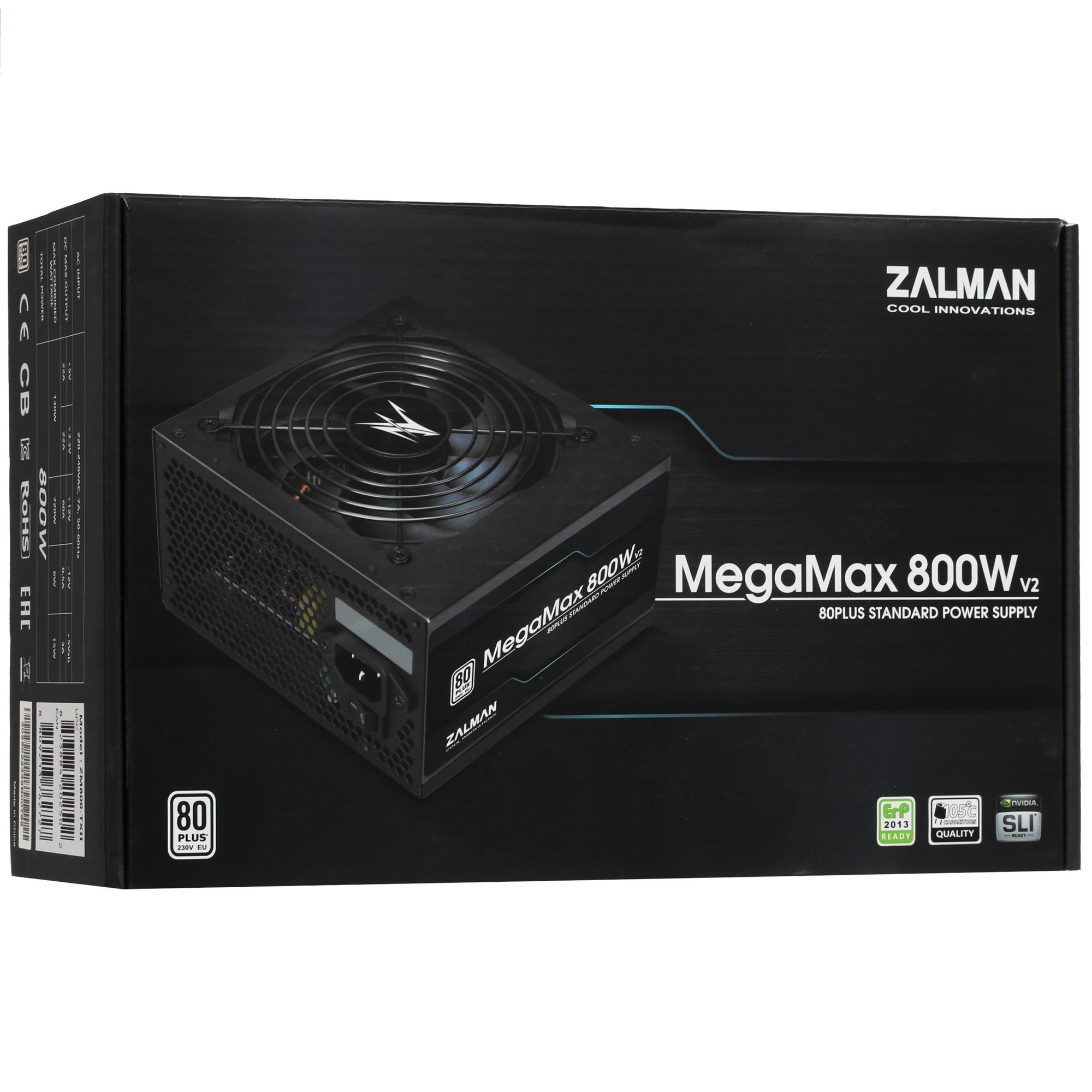 Блок питания Zalman MegaMax 800W (ZM800-TXII), 800Вт, 80 PLUS, 120мм, черный