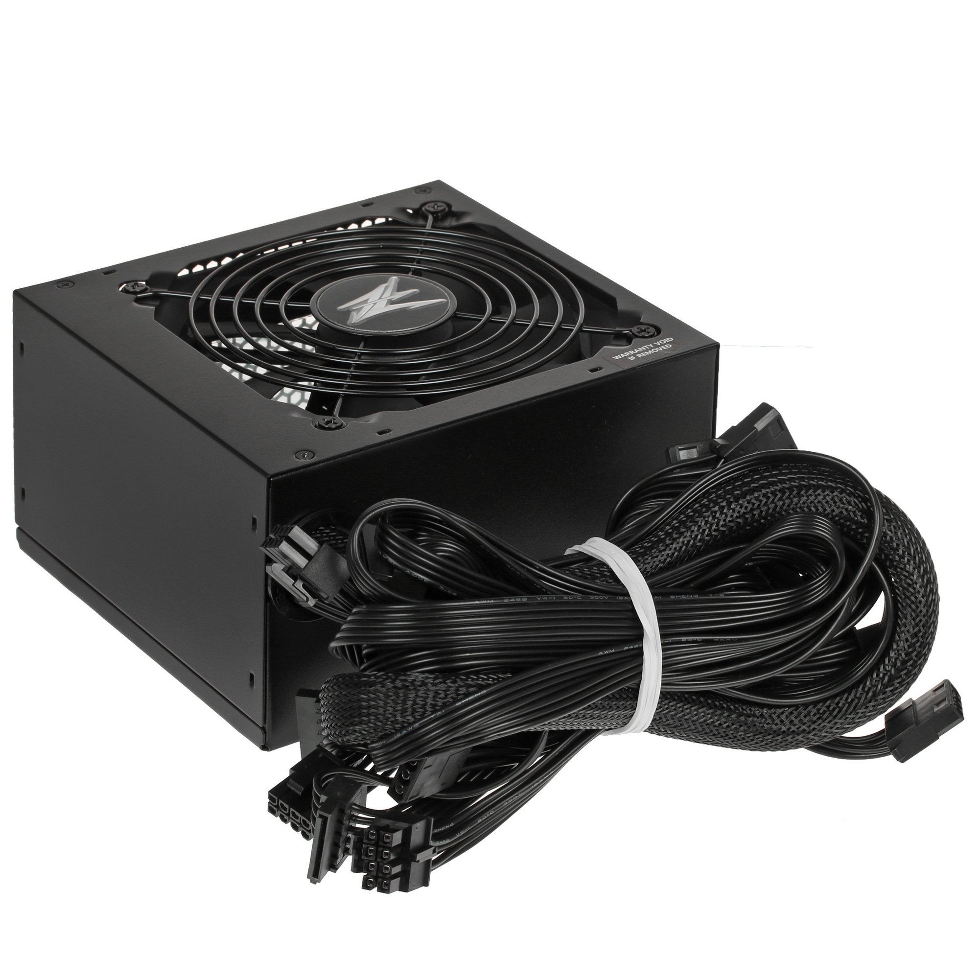 Блок питания ZALMAN MegaMax 800W черного цвета представлен в форм-факторе ATX, что обеспечивает его удобную установку в большинство системных блоков. Номинальная мощность блока составляет 800 Вт. Дополнительно он оснащен активным корректором коэффициента мощности, что делает блок более производительным (80 Plus Standard). Для подключения к разным компонентам в комплекте с устройством имеются провода разной длины: основной, для процессора, PCI-E, SATA, Molex. Они подсоединены к соответствующим разъемам на корпусе блока.