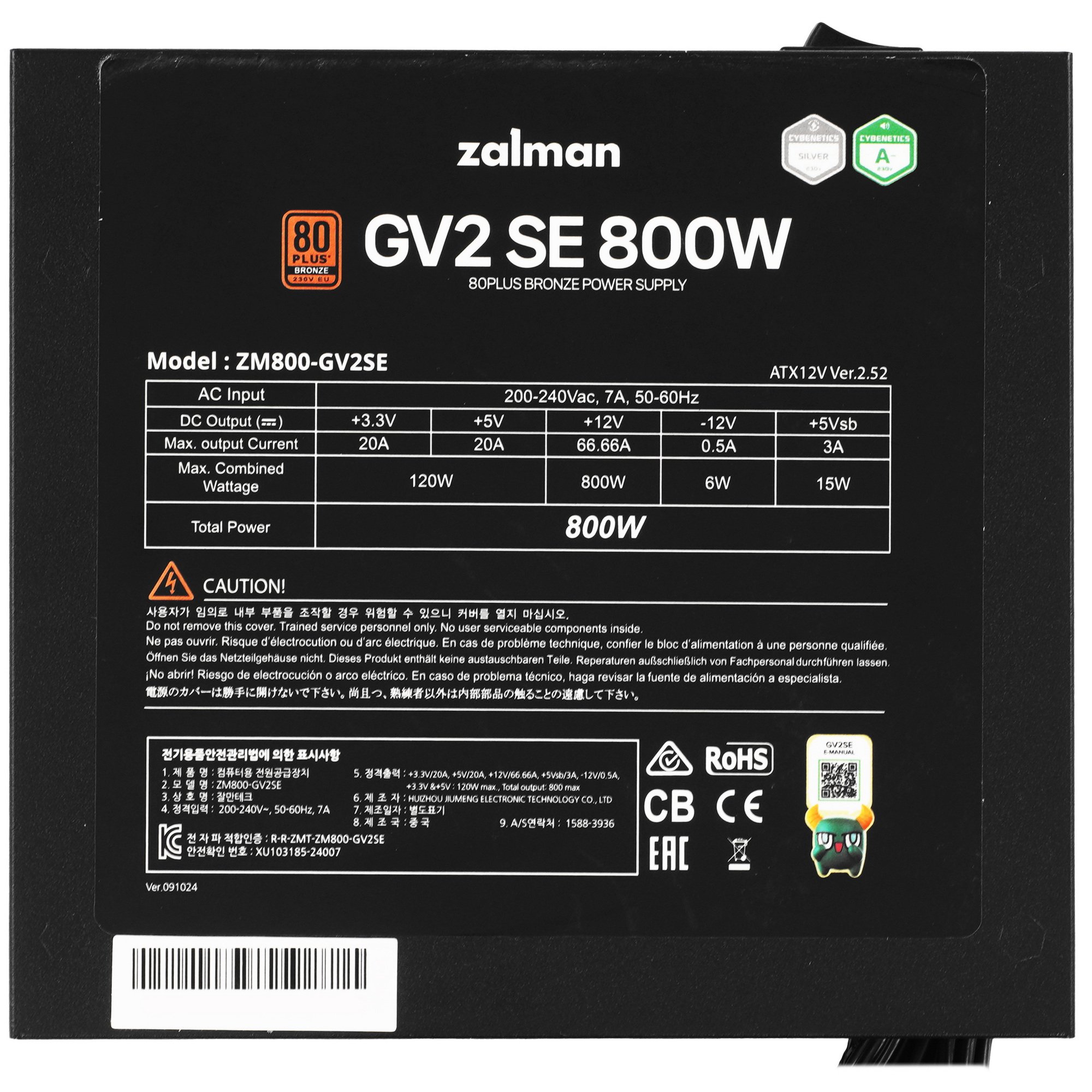 Блок питания ZALMAN GV2SE 800W формата ATX станет отличной основой для использования в производительных игровых и рабочих компьютерах. Номинальная мощность составляет 800 Вт. Источник питания изготовлен с применением высококачественных компонентов и материалов, благодаря чему отличается высокой надежностью. Для предотвращения перегрева используется охлаждение, представленное вентилятором диаметром 120 мм.