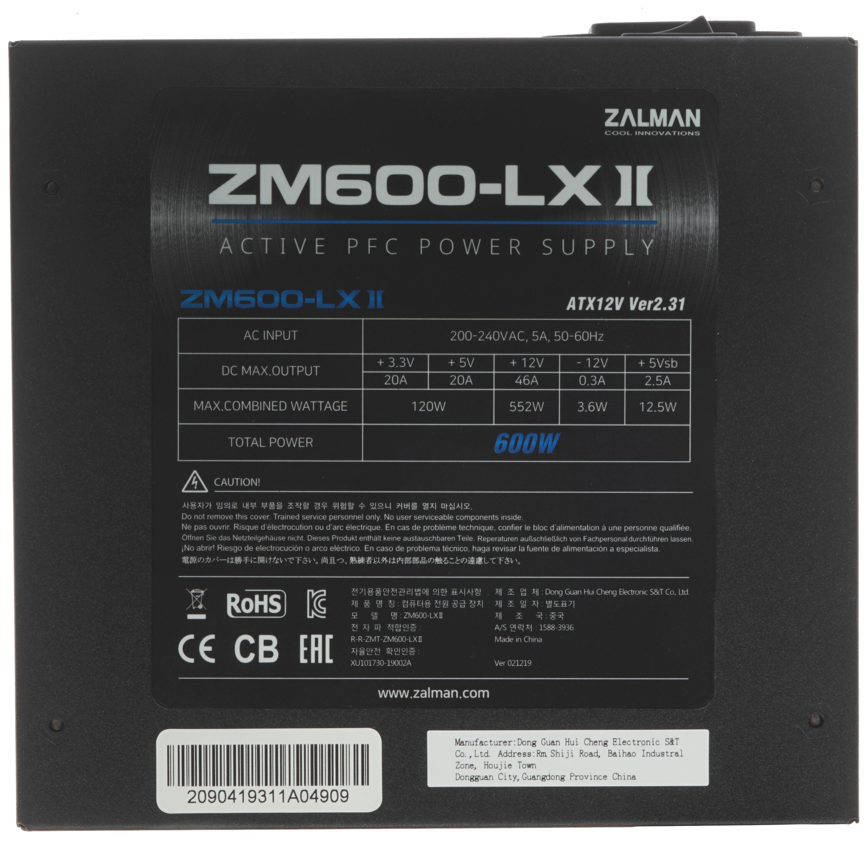 Блок питания Zalman ZM600-LXII RTL, 600Вт, 120мм, черный