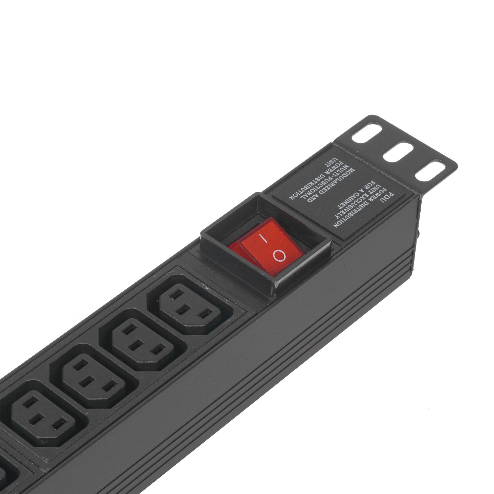 Блок розеток горизонтальный ExeGate ServerPro PDU-19H001 Al-10С13-C14-SW, 1U, Алюминий, 10 IEC 320 C13, С14, выкл. с подсветкой, черный