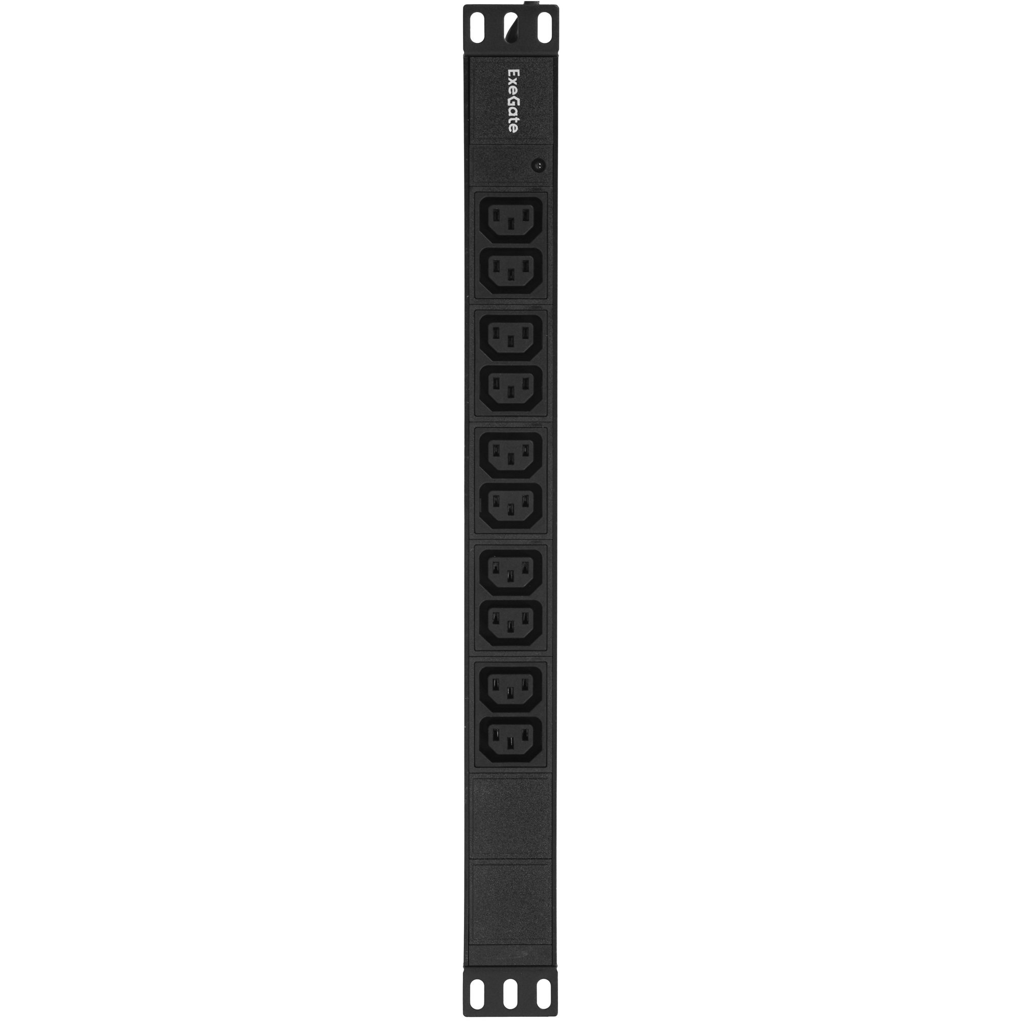 Блок розеток горизонтальный ExeGate ServerPro PDU-19H005 Al-10C13-EU3, 19", 1U, Алюминий, 10 IEC 320 C13, кабель с евровилкой VDE-250V-16A-3*1.5мм2, 3 метра, черный