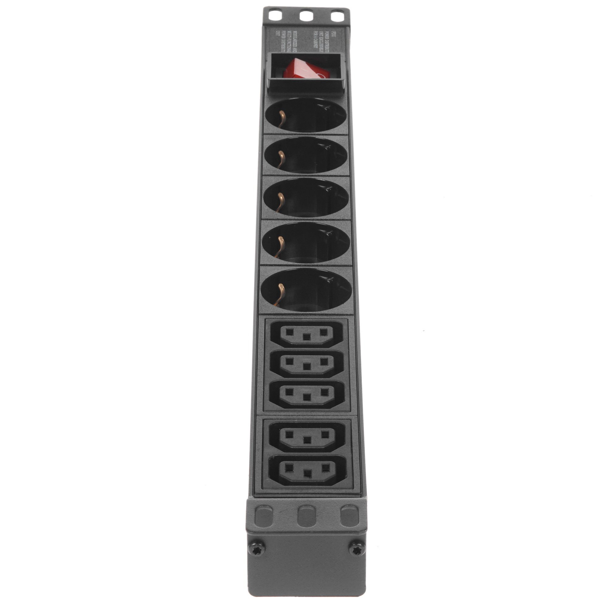 Блок розеток ExeGate ServerPro PDU-19H008 [EX280866RUS] предназначен для совместной работы с профессиональным сетевым оборудованием. Данная модель предлагает 10 розеток – 5 компьютерных розеток стандарта IEC-320-C13 и 5 розеток «евростандарт» с заземлением, расположенных в один ряд. ExeGate ServerPro PDU-19H008 [EX280866RUS] характеризуется максимальной мощностью подключения внешнего оборудования 2200 Вт и током нагрузки в пределах 10 А. Общий выключатель со световым индикатором позволяет простым нажатием деактивировать все доступные розетки.
