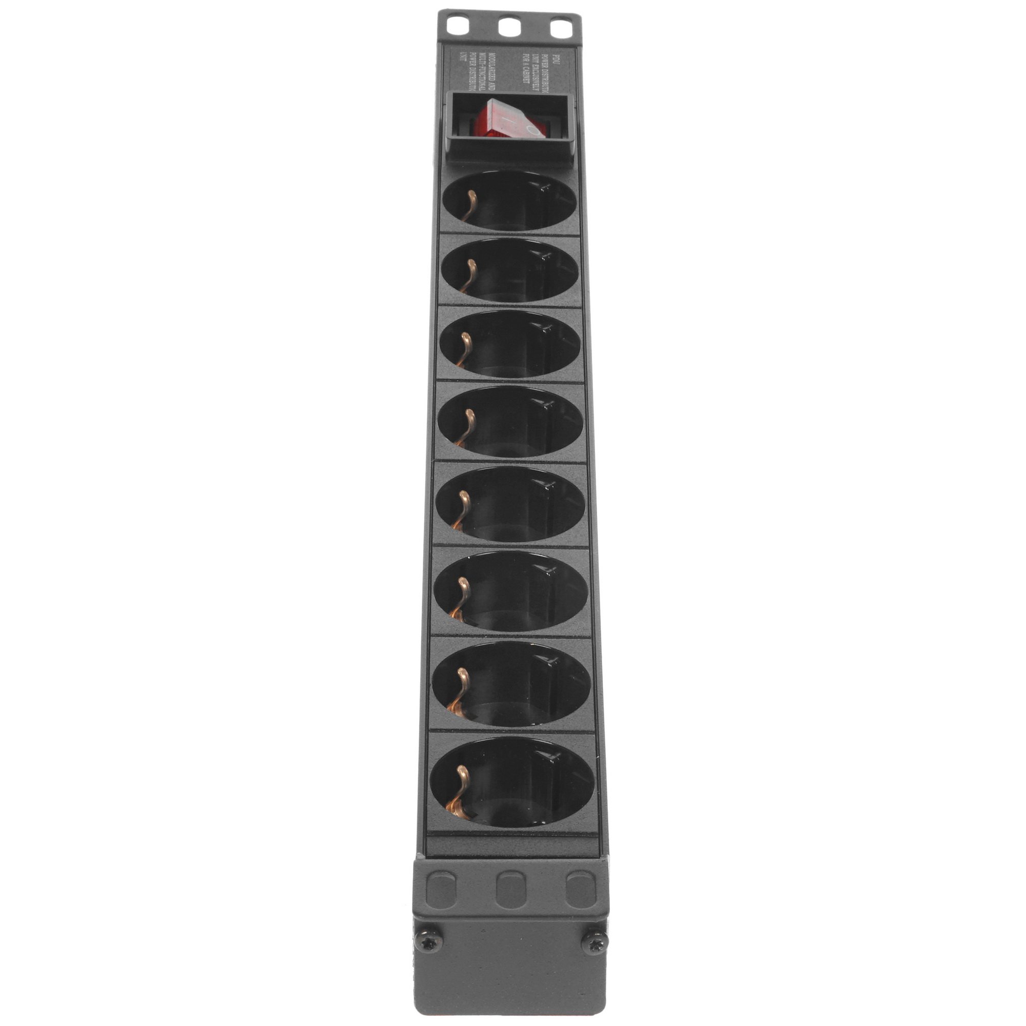 Блок розеток горизонтальный ExeGate ServerPro PDU-19H801 Al-8S-C14-SW, 19", 1U, Алюминий, 8 Schuko, С14, выкл. с подсветкой, черный